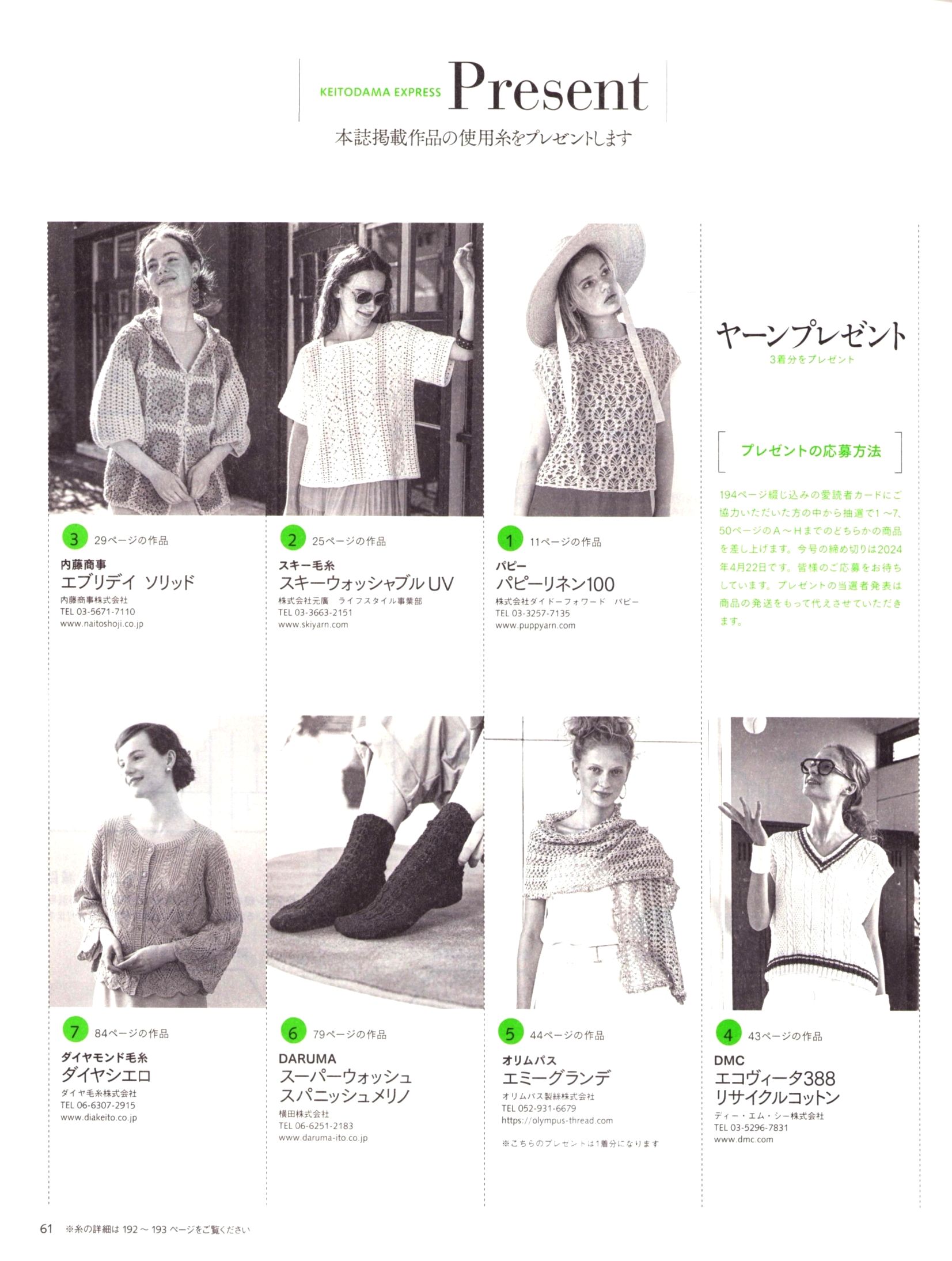 Вязаные модели в журнале «Keito Dama №201 - Spring 2024»