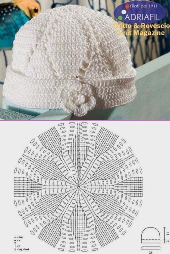 Шапочки крючком . Схемы