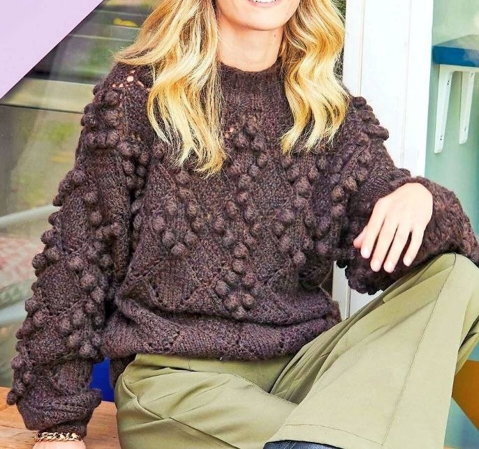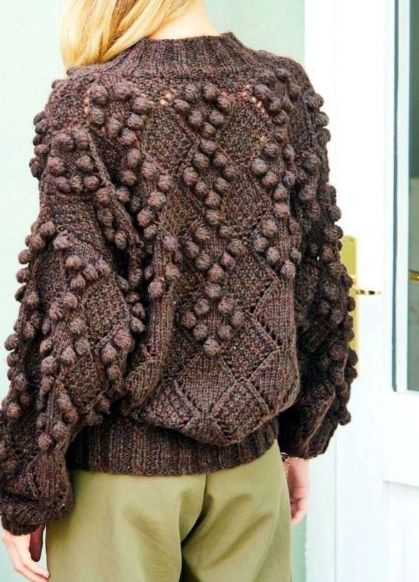 Тёмно-коричневый свитер с крупными ромбами и объёмными шишечками . 🌺💕