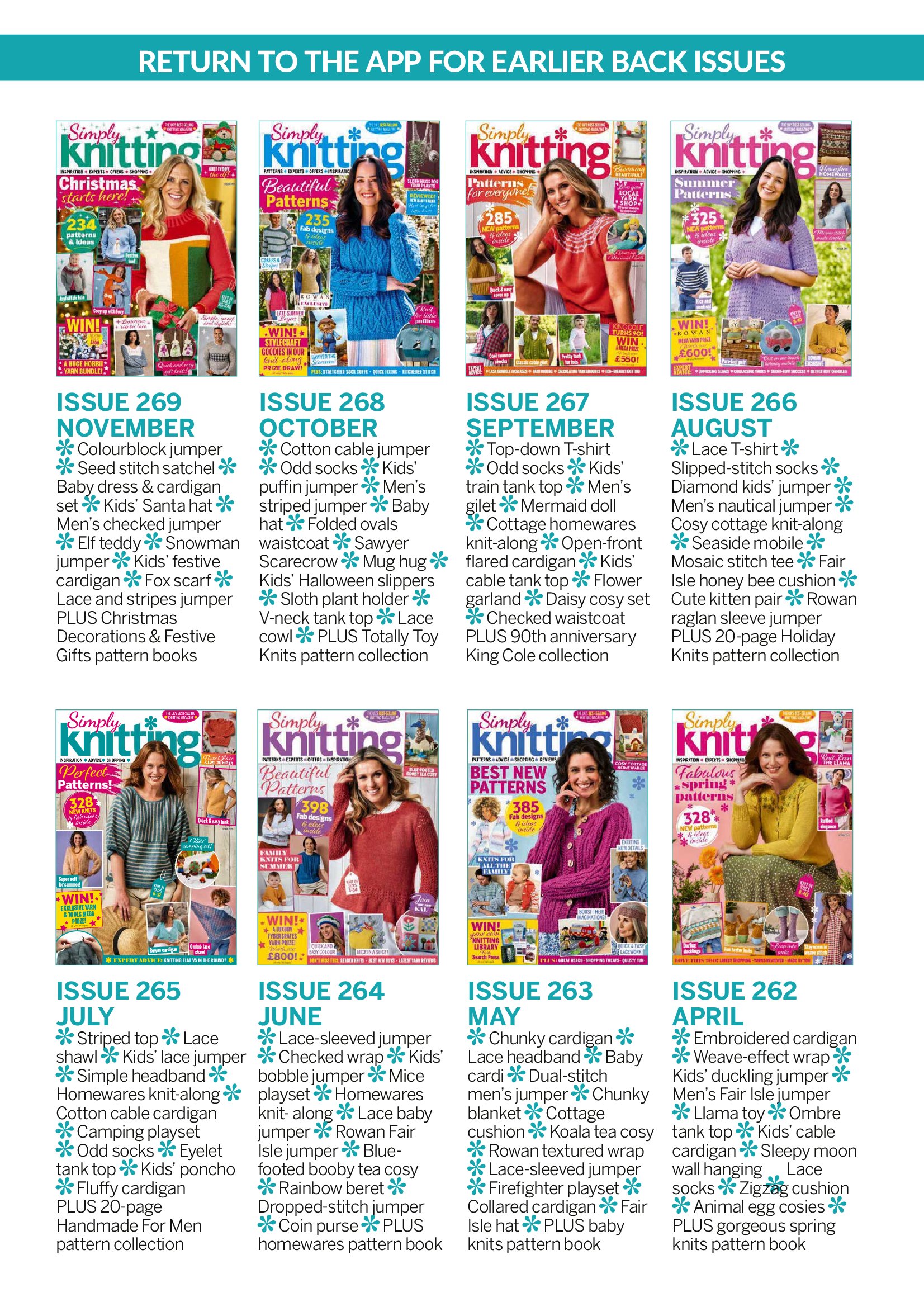 Журнал по вязанию спицами. В каждом выпуске представлено более 20 моделей одежды и аксессуаров для взрослых и детей, интересные идеи для создания уюта в вашем доме. В номере много творческих идей для тех, кто любит вязать. Красивые проекты одежды, игрушки, предметы интерьера для дома, модные аксессуары и идеи подарков на все случаи жизни.