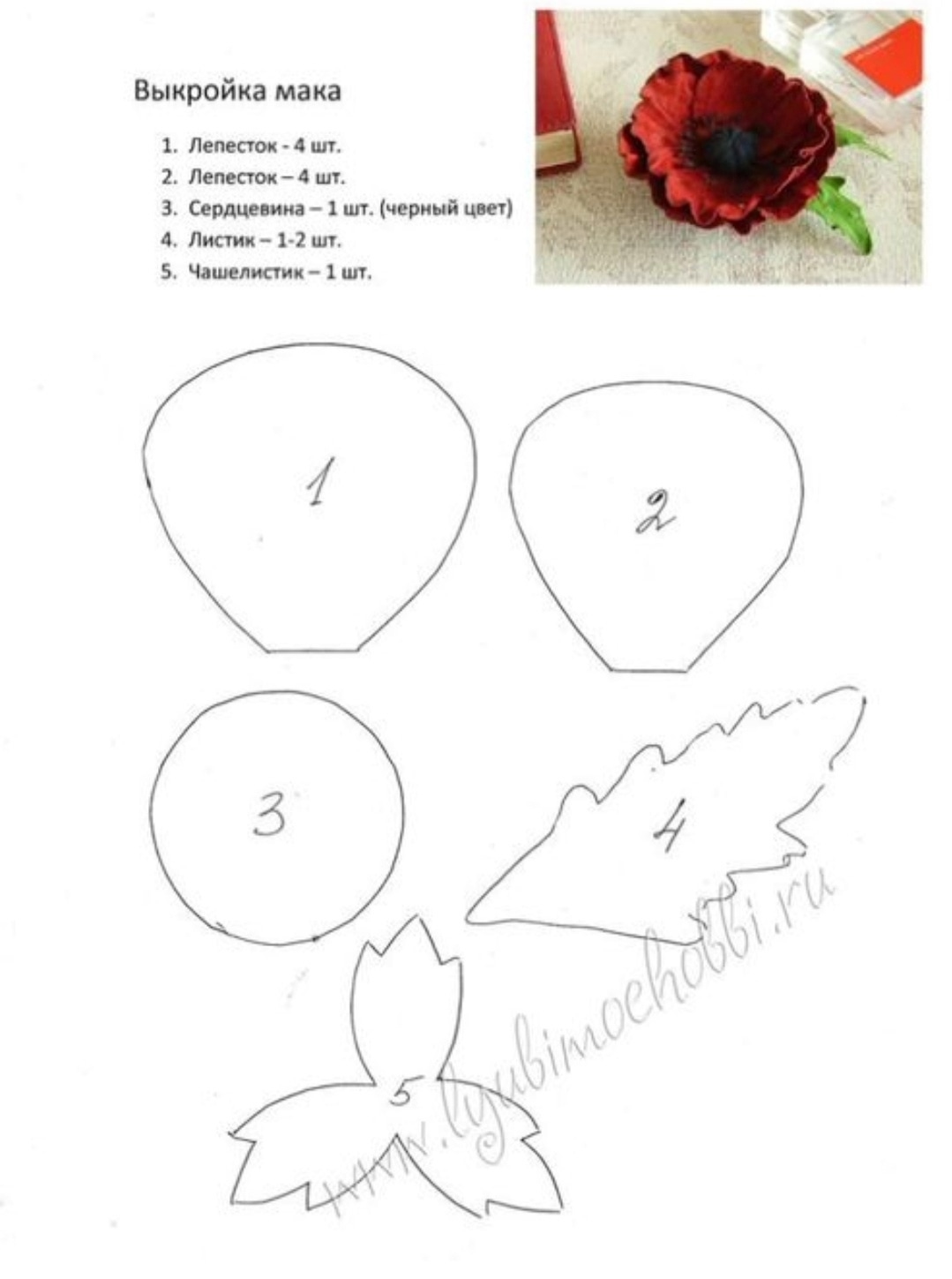 Маки из фоамирана. Шаблоны
