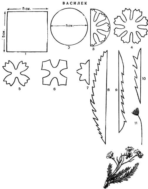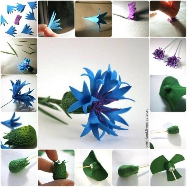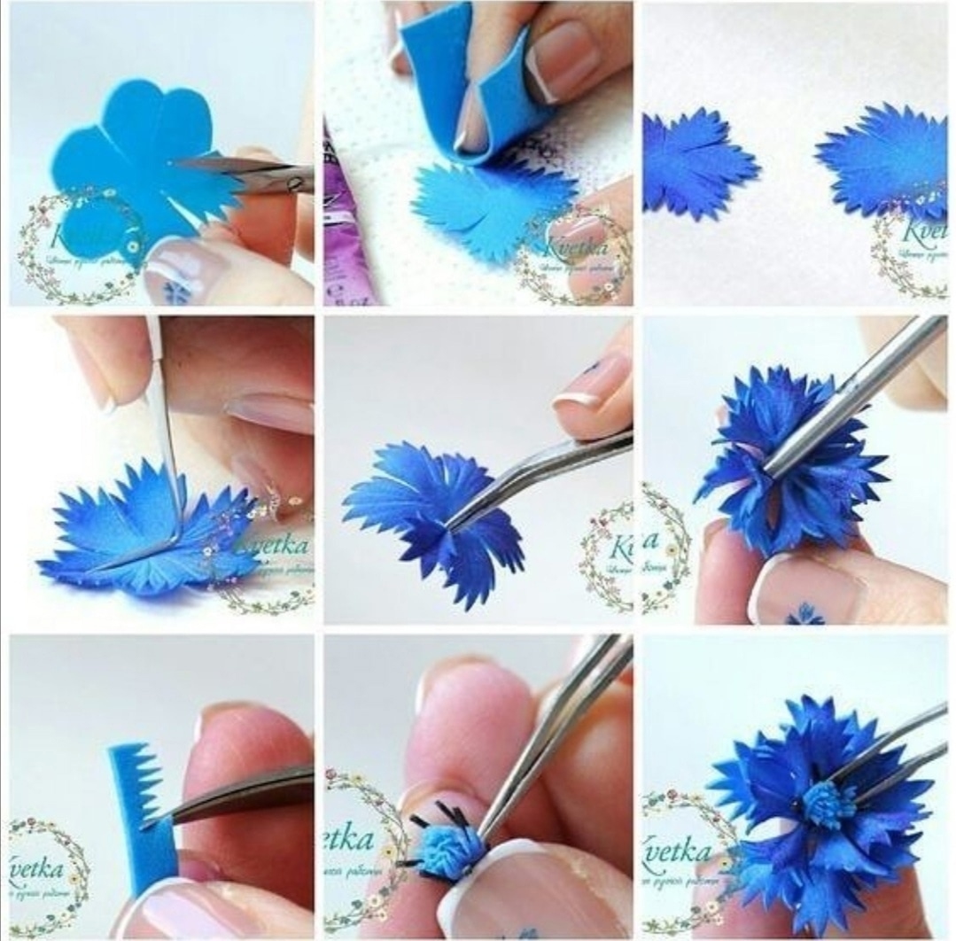 Синий василек из фоамирана. Шаблоны