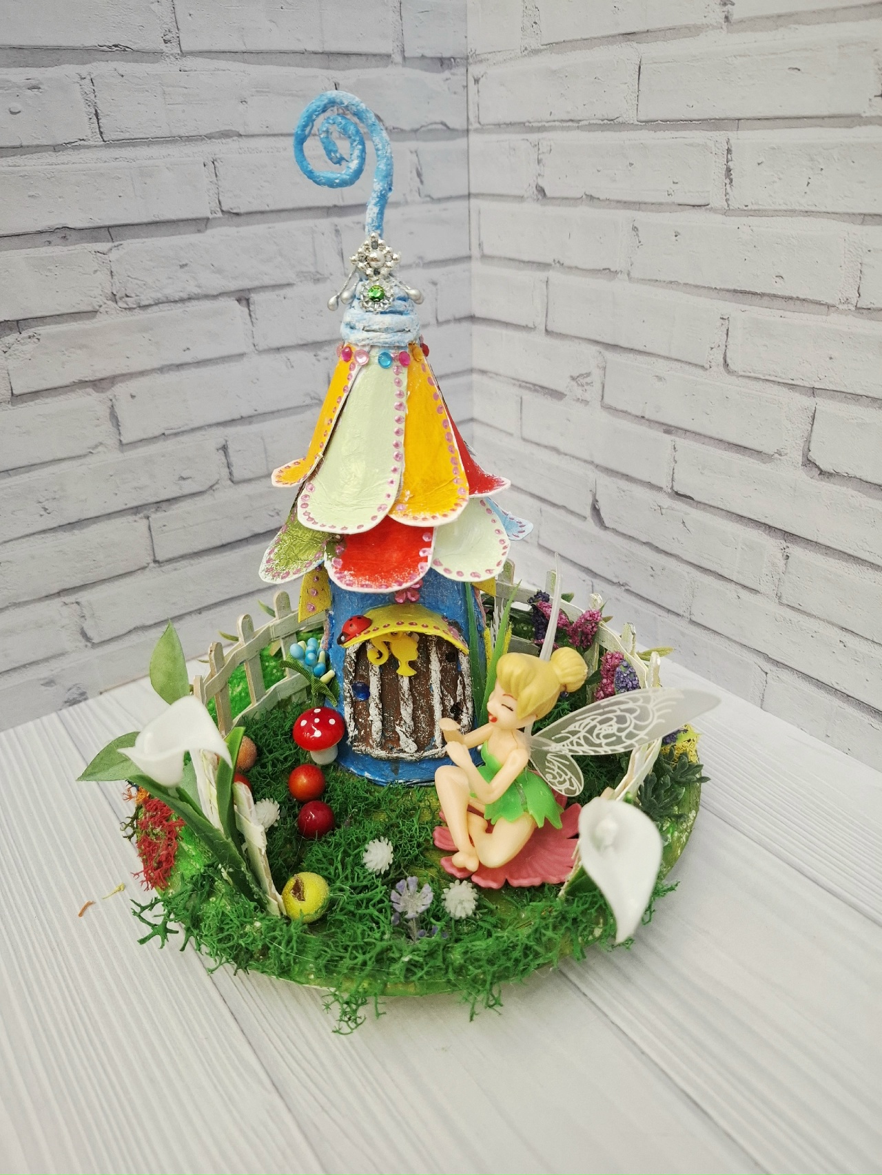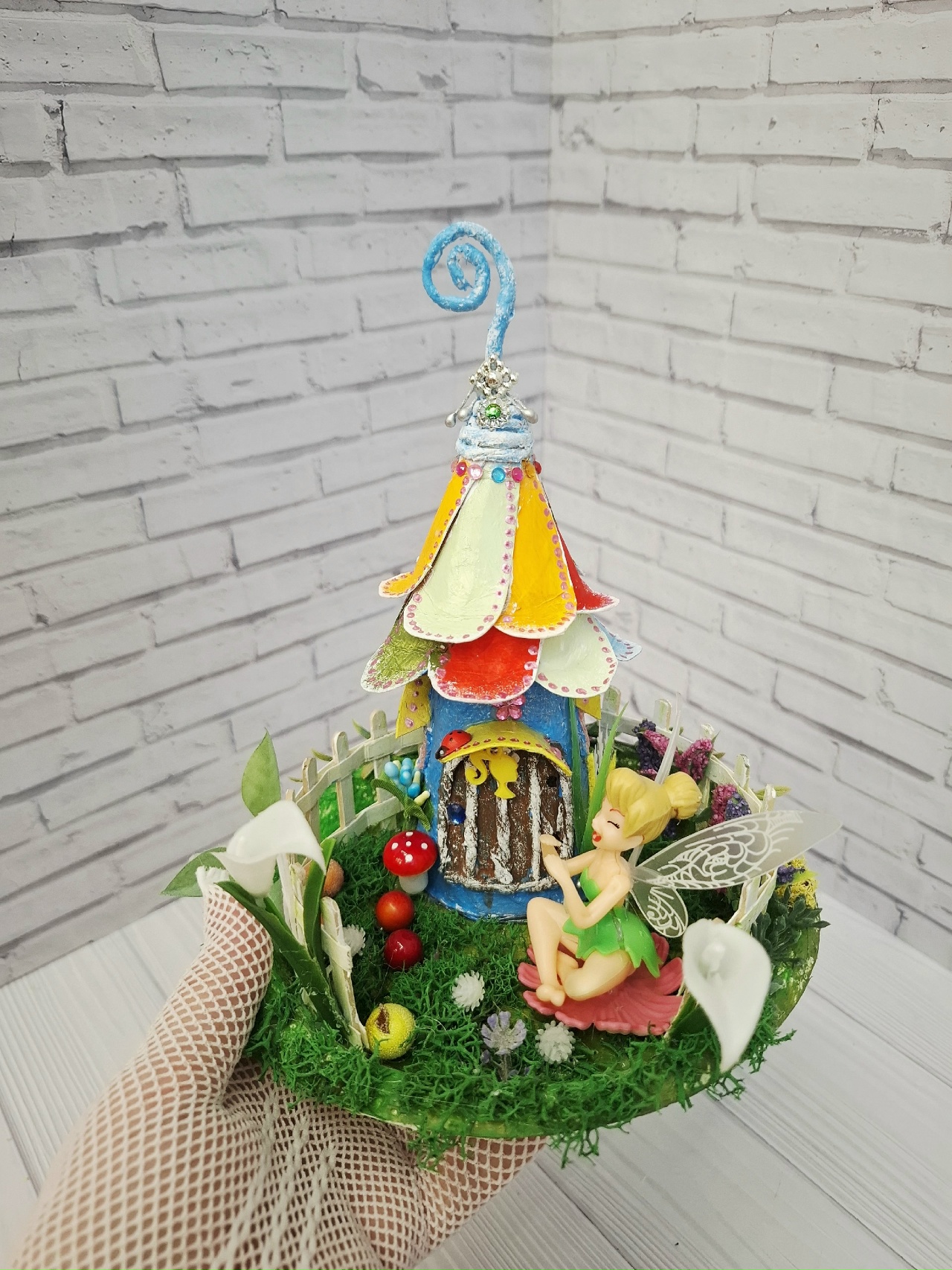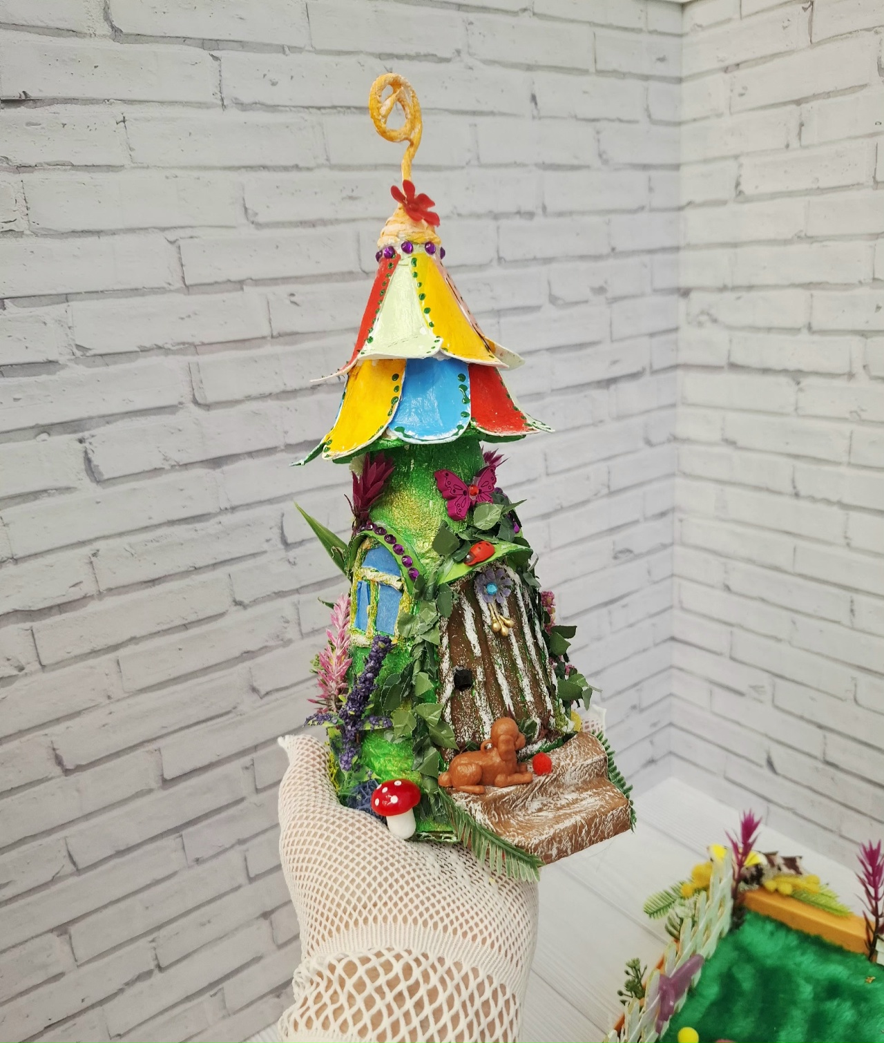 И все это сделано из "мусора": ненужных коробок,пластиковой тарелки.Покупные только феи и растения.Хотя и растения можно сделать самим.У меня просто много цветов уже в наличие, использую их для своих работ.