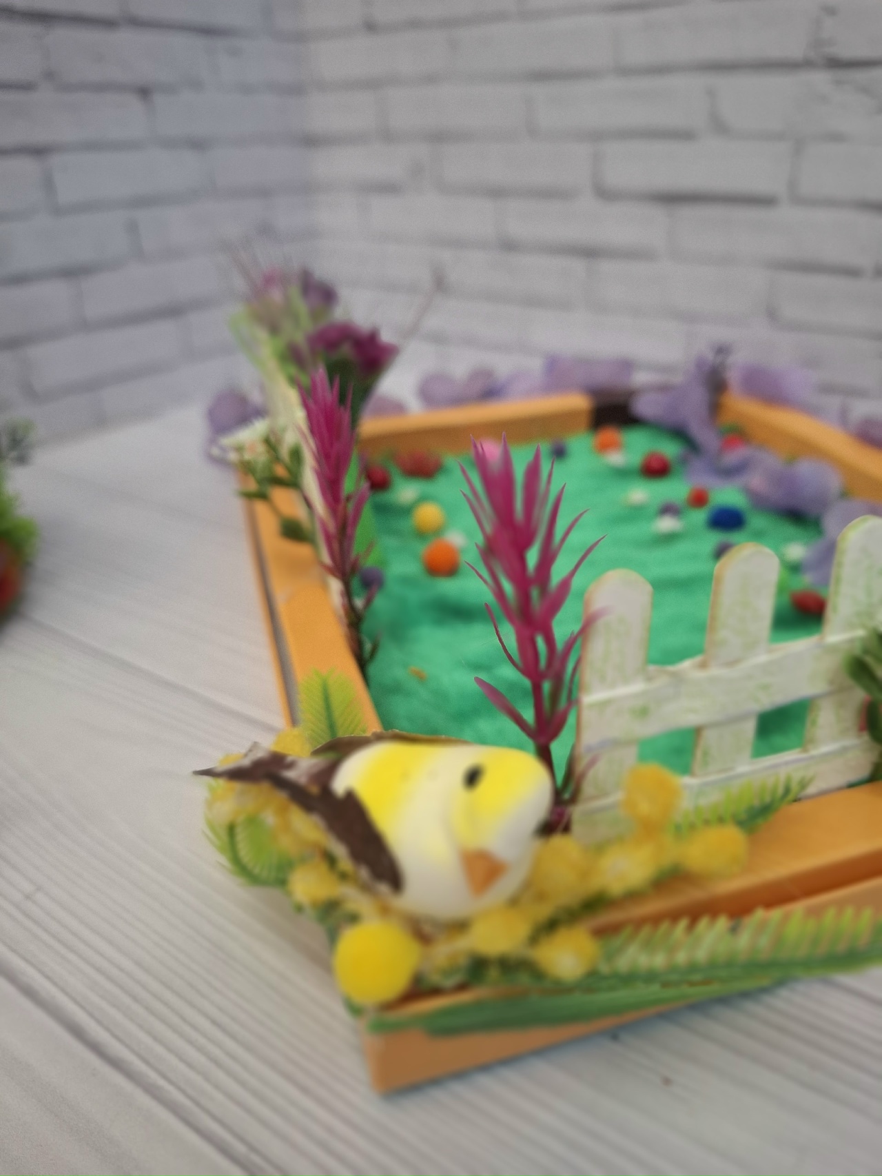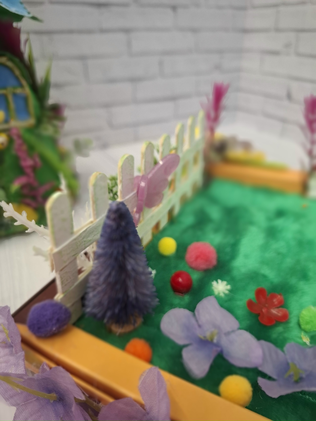Для домика сделала из конфетной коробки,сказочный садик