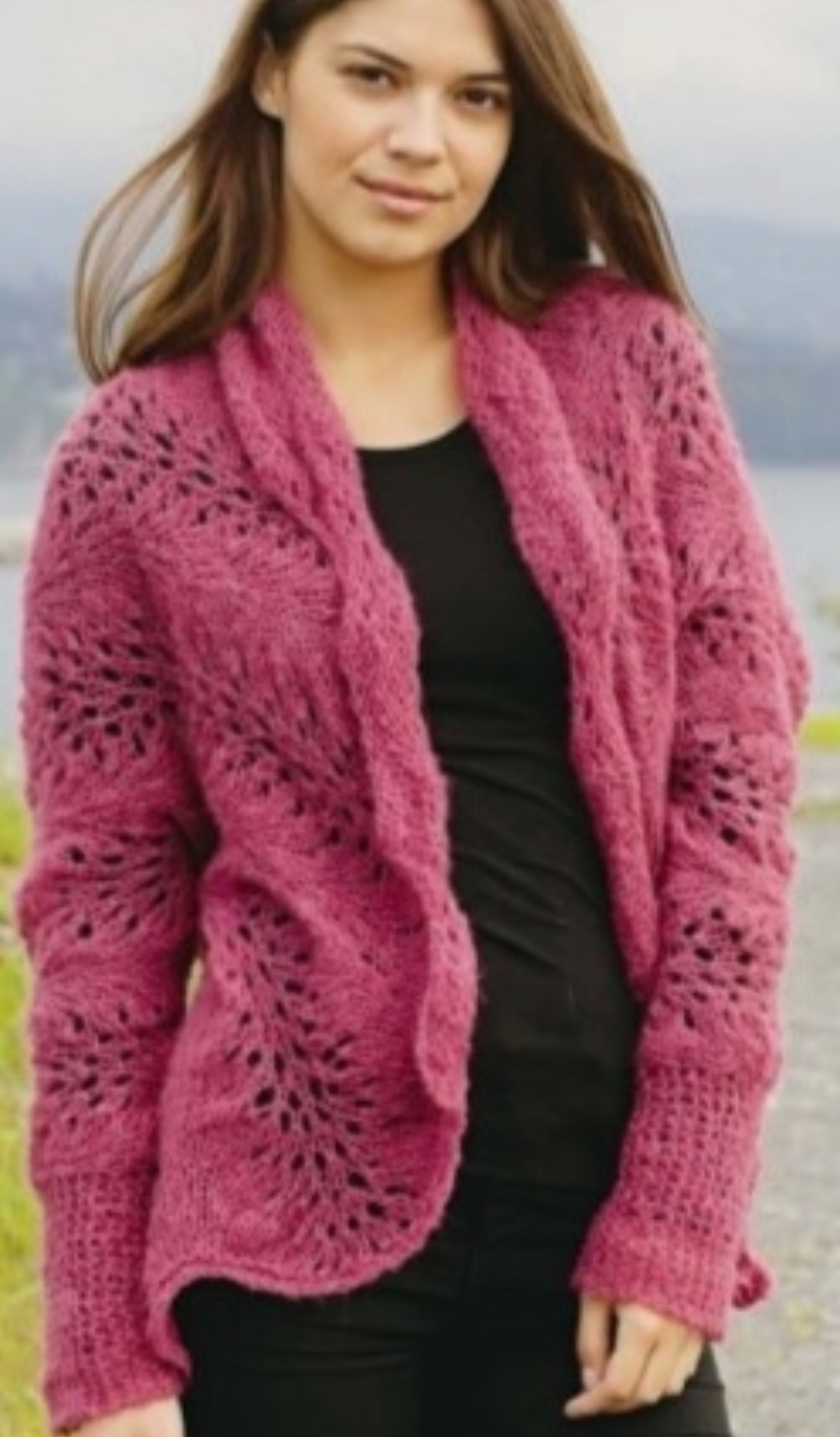 Легкий ажурный жакет, ниспадающий красивыми волнами, станет истинным украшением вашего гардероба.