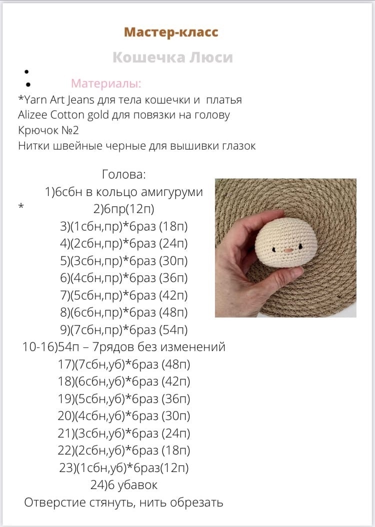 Свяжем милую кoшeчку крючком