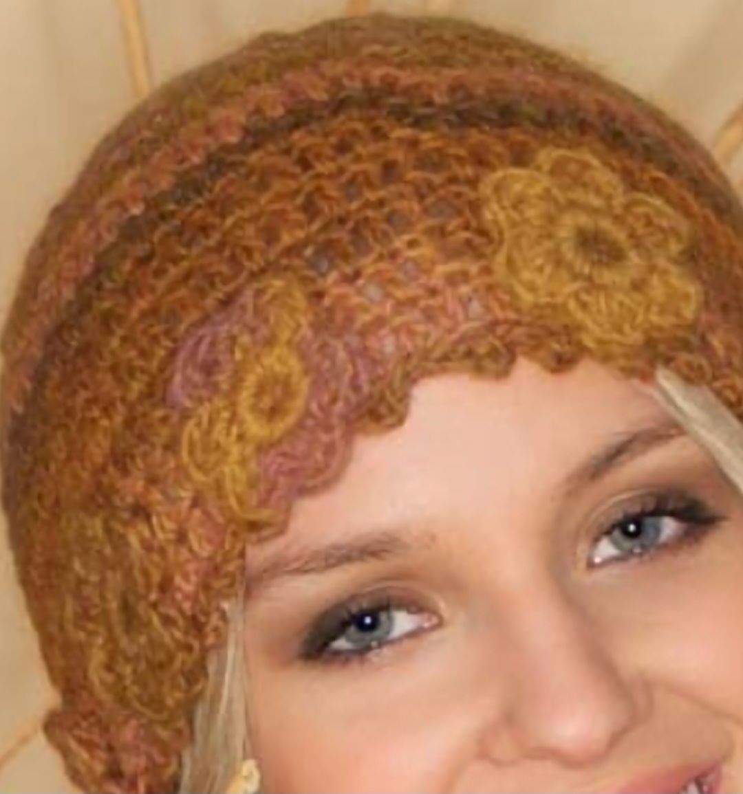 Носите эту шапочку саму по себе или с пуловером с цветами.