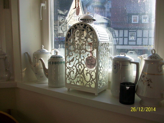 Милые рукодельницы! Дорогие девочки, подруги!!! Приглашаю вас всех на чашку кофе.Нам всем не помешает отдых, мы славно все потрудились, готовя волшебные подраки для наших близких и друзей. Будучи в отпуске в Бад Грунд , заглянули в ,, Gafe Antigue,, и не пожалели. Теплая атмосфера , старинный уют, легкая грамофонная музыка и.....горячий кофе. Ну что еще надо, если на календаре Рождество, а на улице льет мелкий дождь. Вот такая у нас нынче зима !