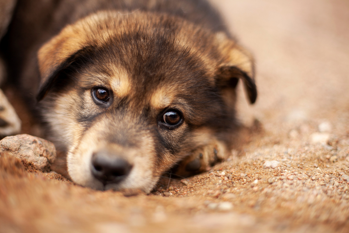 Щенок смотрел на человека, по вине которого оказался на обочине, но не лаял, ни скулил.