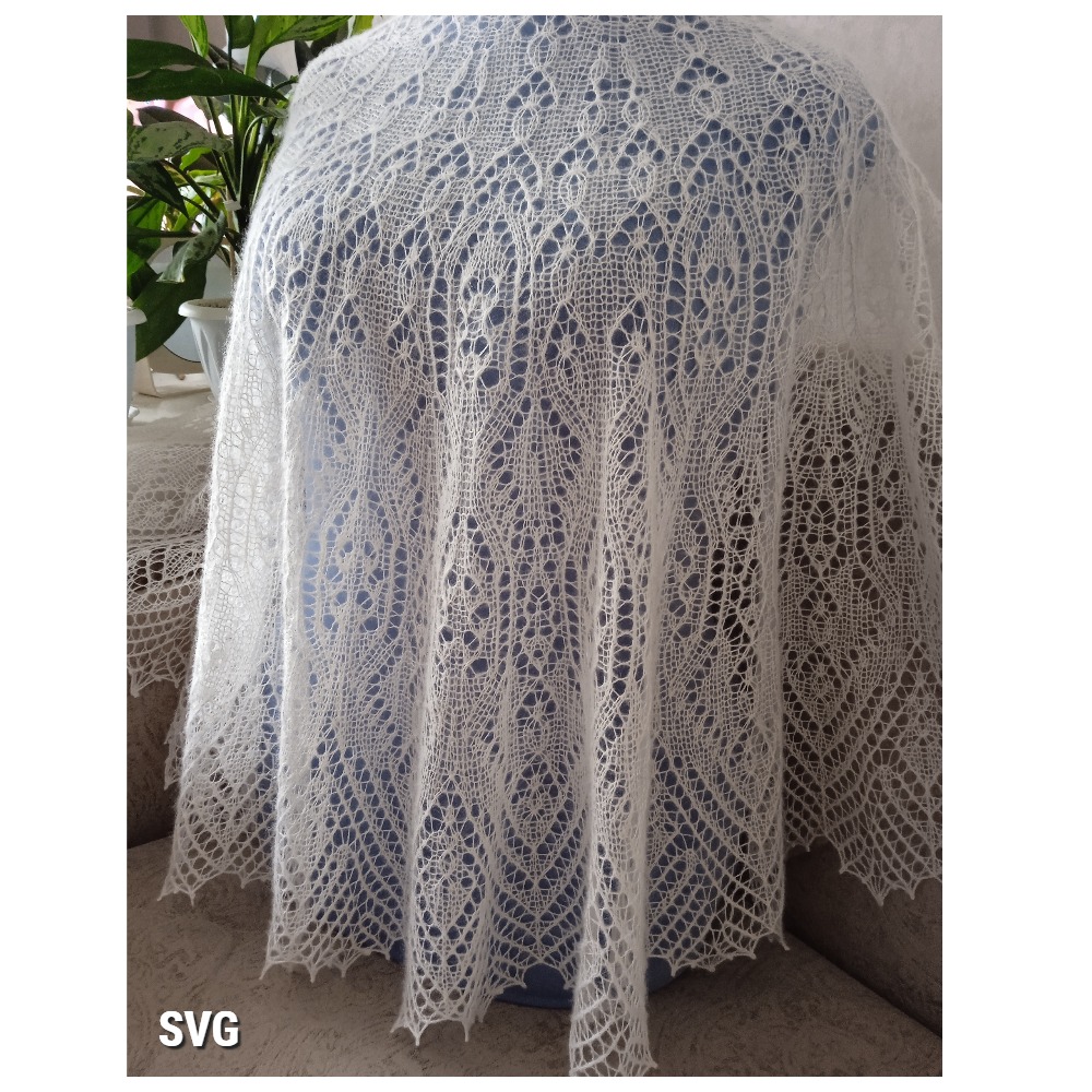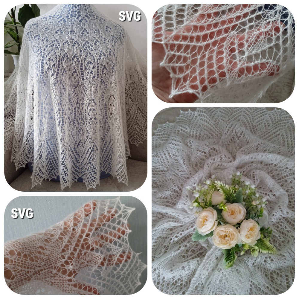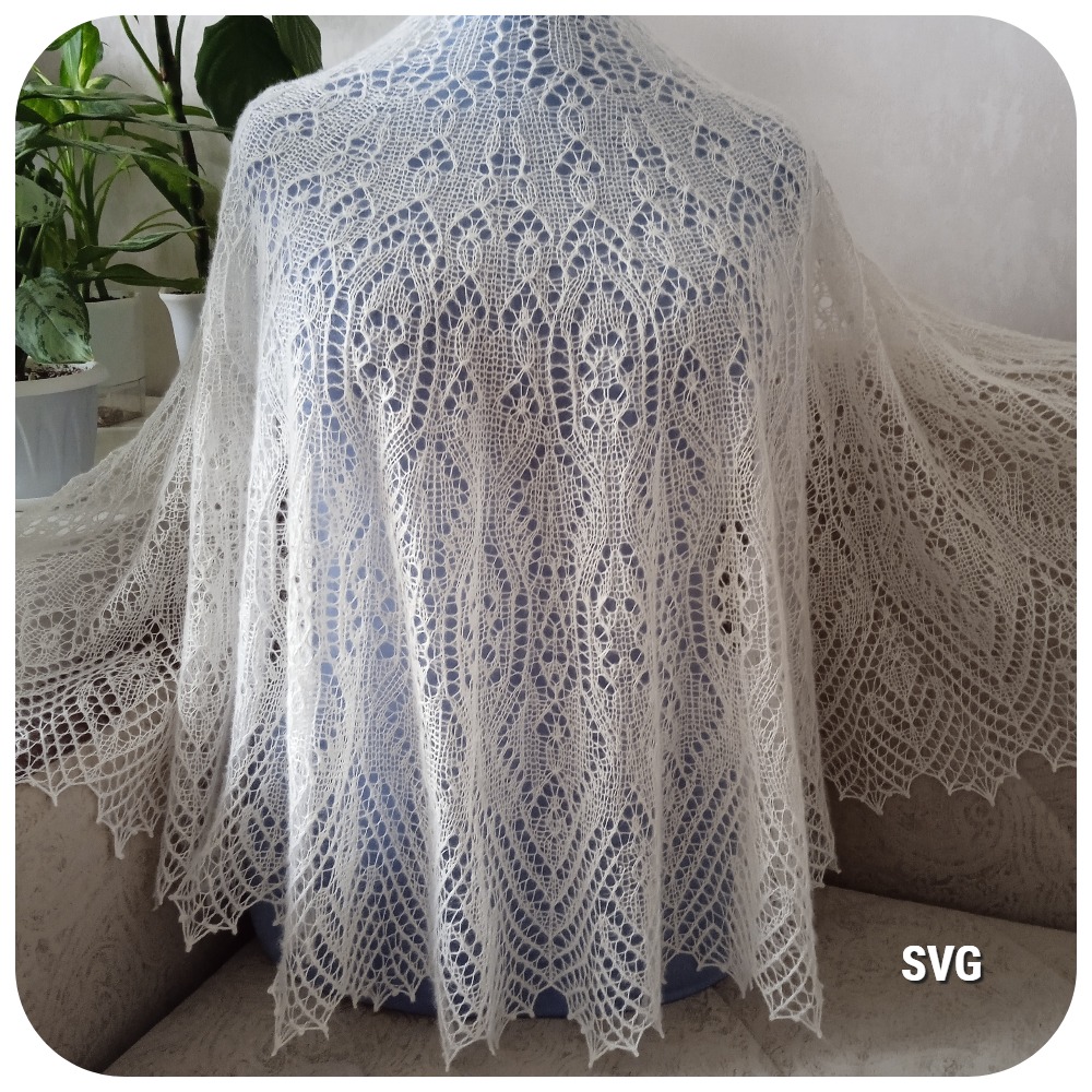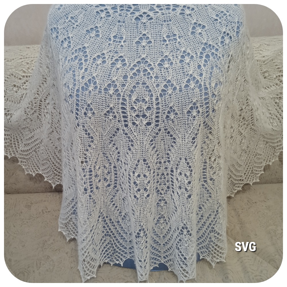 Шаль полукруглой формы связана спицами из двух видов пряжи