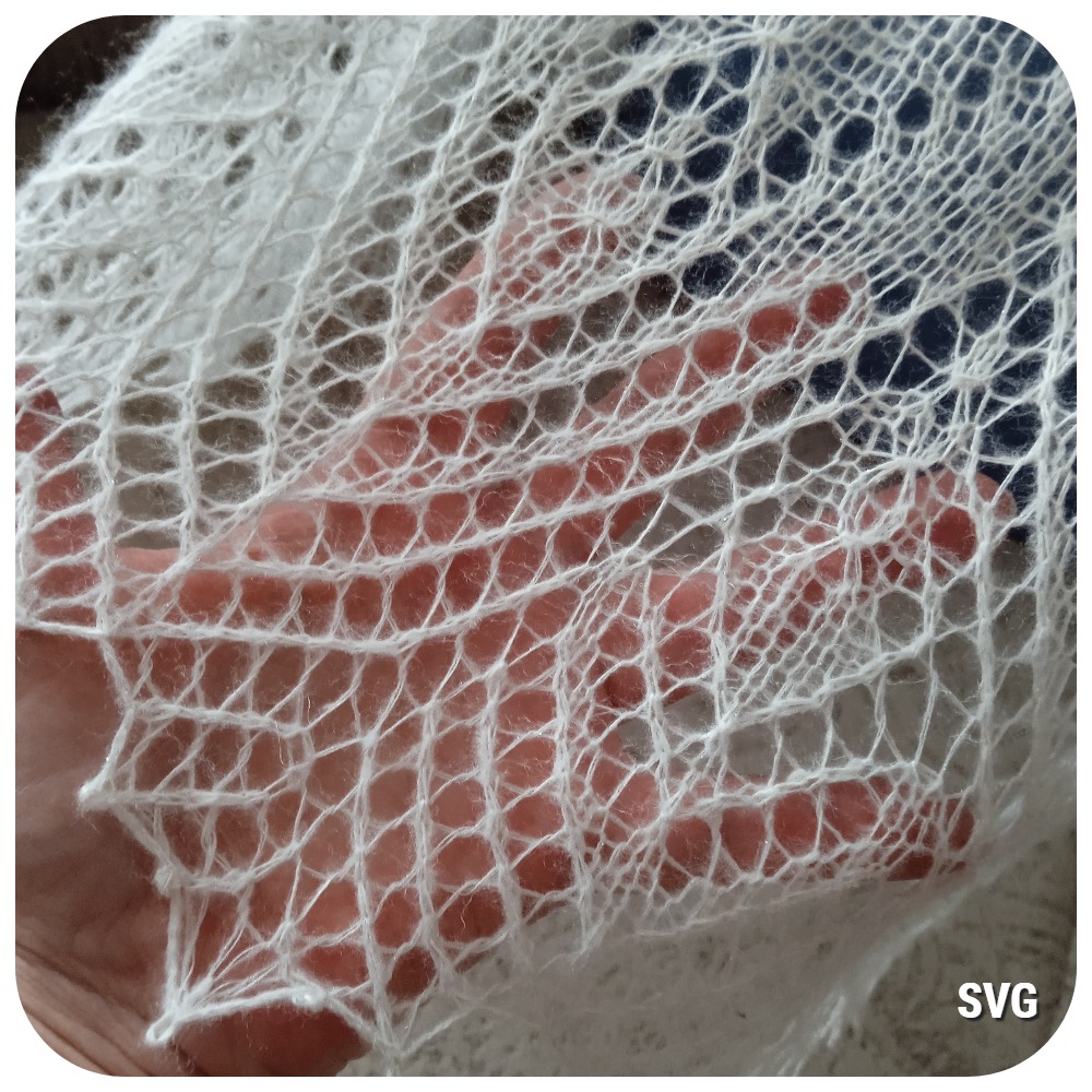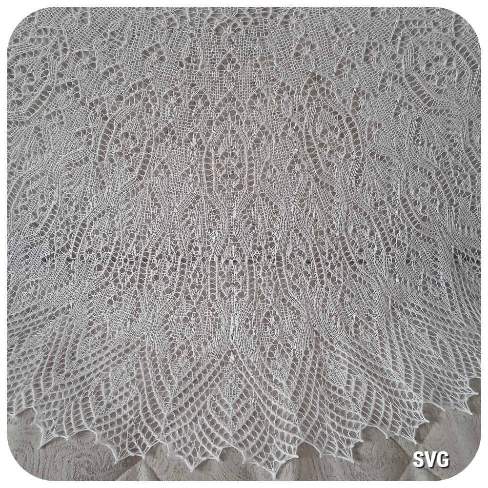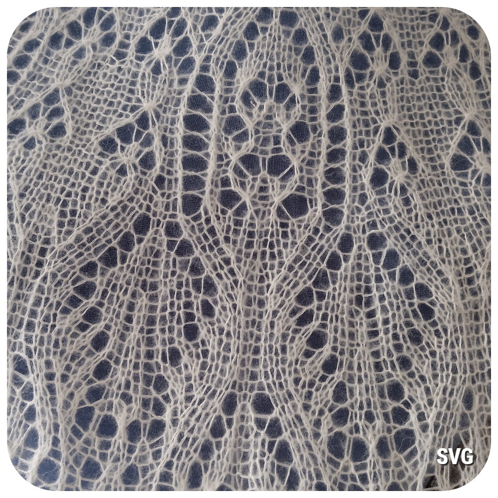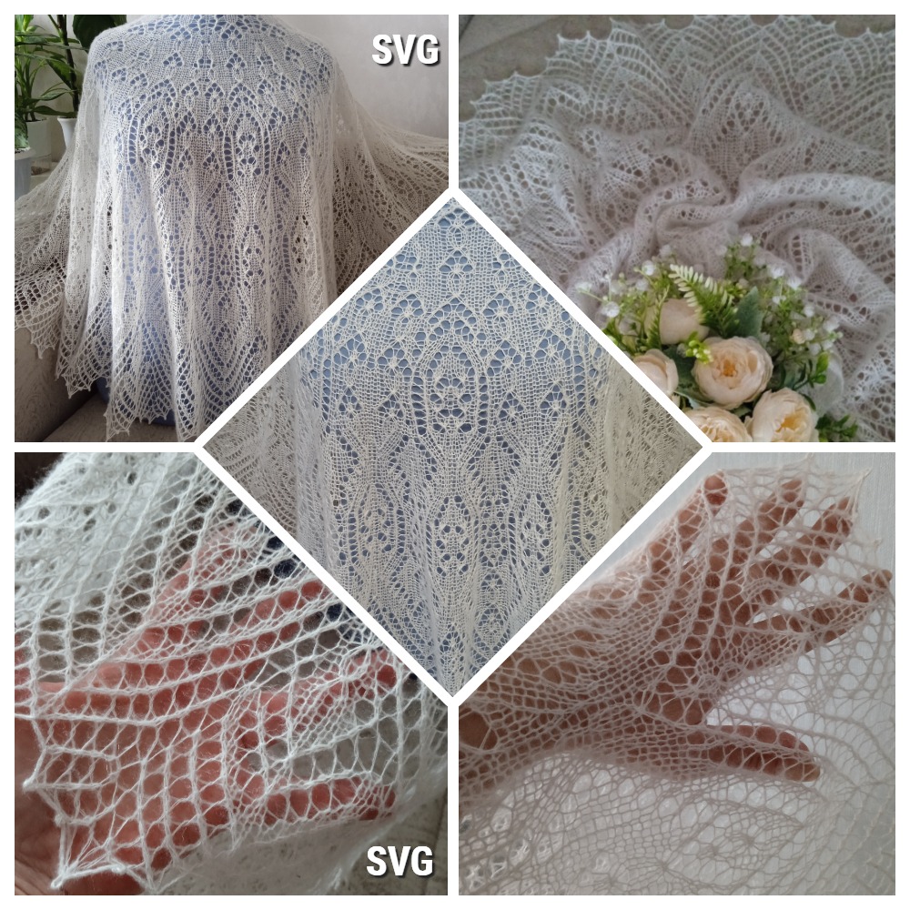 Шаль полукруглой формы связана спицами из двух видов пряжи