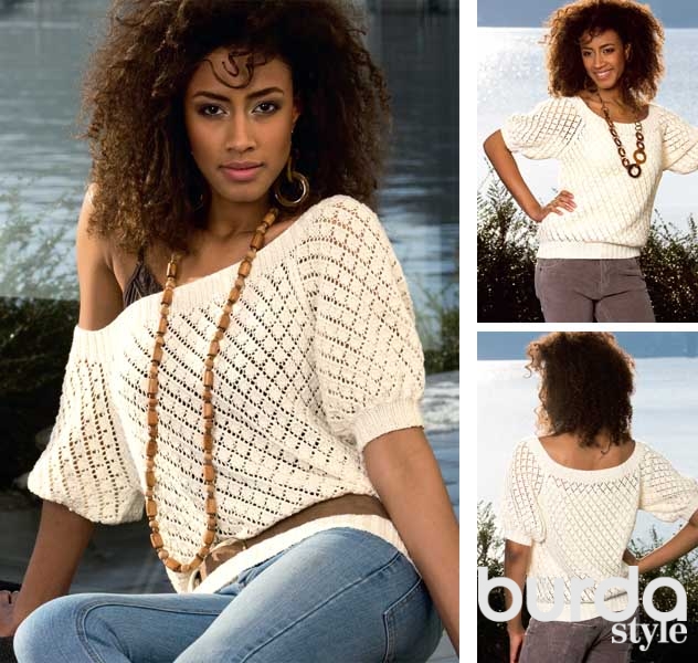 Воздушный и легкий, из хлопковой пряжи с добавлением волокон бамбука, этот пуловер связан на очень тонких спицах.