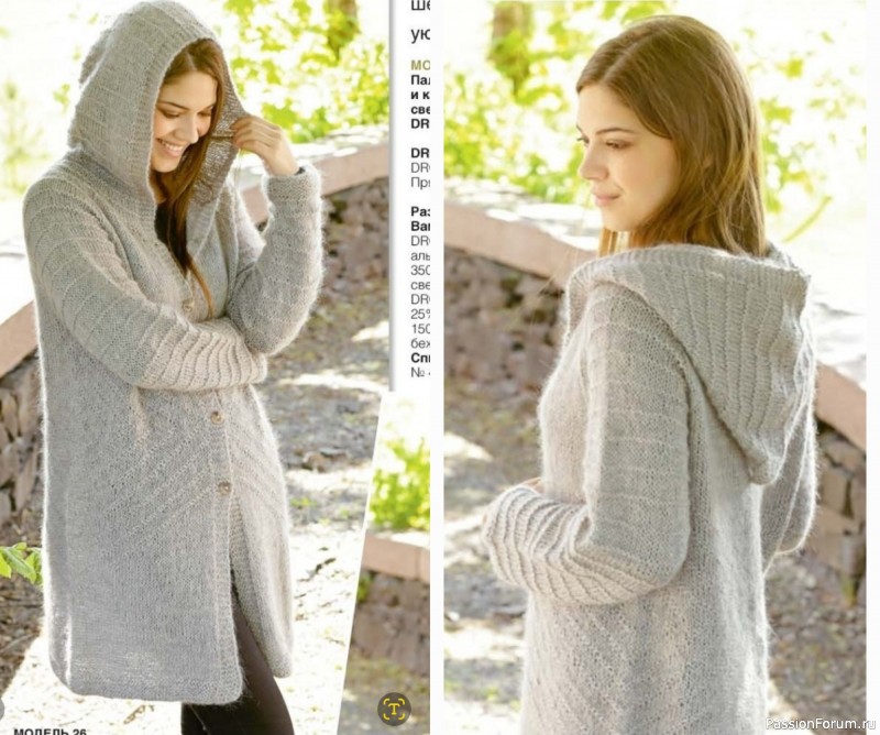 Пальто с рукавами реглан и капюшоном. Описание