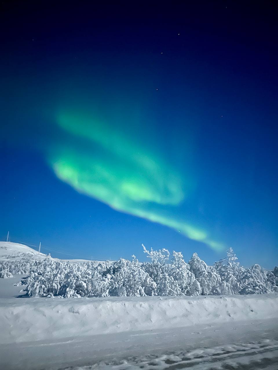 В маршруте экскурсионного тура увидеть Северное сияние значилось как охота за Северным сиянием. И это реально охота. То есть у каждого гида или человека, увлеченного этой темой, есть карты прогноза полярного сияния за два часа до его появления. И они смотрят куда отправиться, толи на границу с Финляндией, толи с Норвегией и т.п. В первую ночь нам не свезло, мы сменили три или четыре локации, намотали кучу километров и не солоно хлебавши вернулись в гостиницу около часа ночи. А мы просто его не дождались, Поэтому на следующую ночь мы были настроены решительно. Ждать всю ночь, но дождаться! И дождались!
