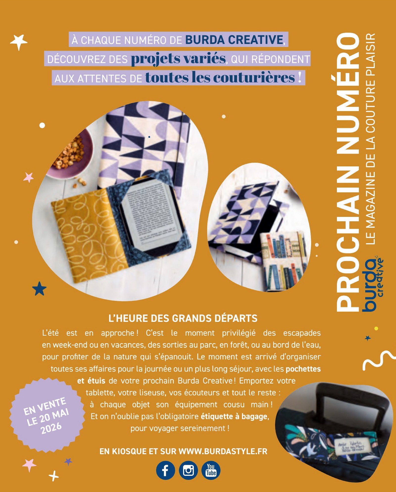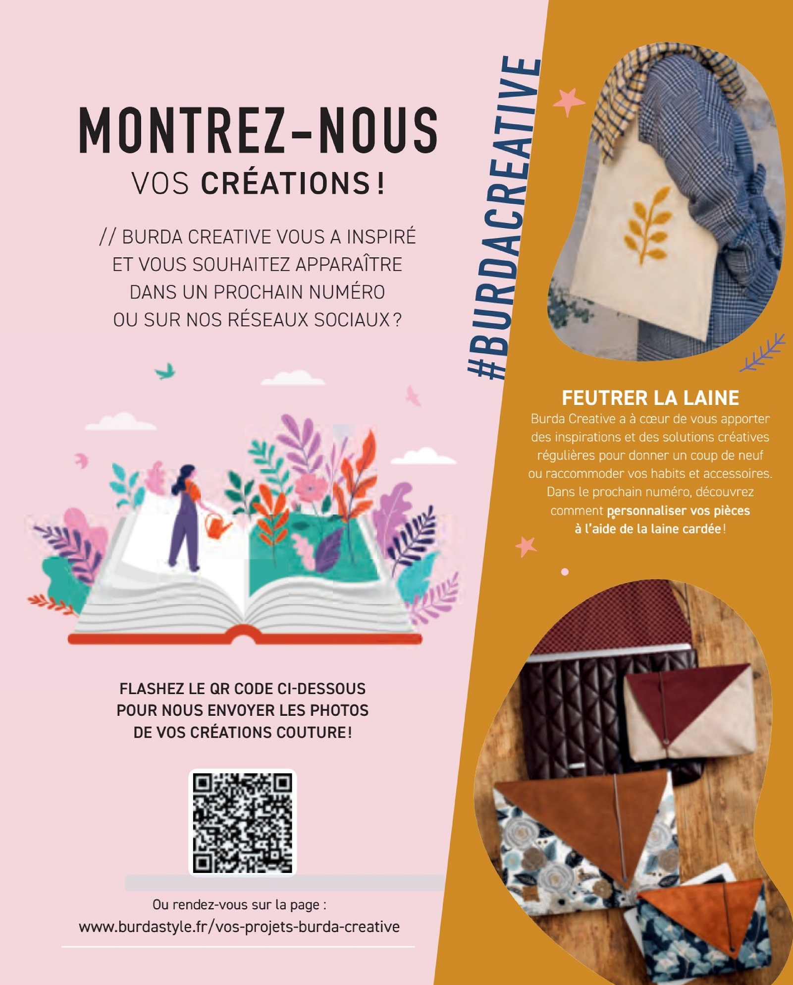 «Burda Creative» предлагает оригинальные идеи для шитья на модную тему. Не одежда для пошива, а скорее практичные аксессуары, сгруппированные по разным темам: сумки, столовые принадлежности, шитье с небольшими проектами, украшения для дома.