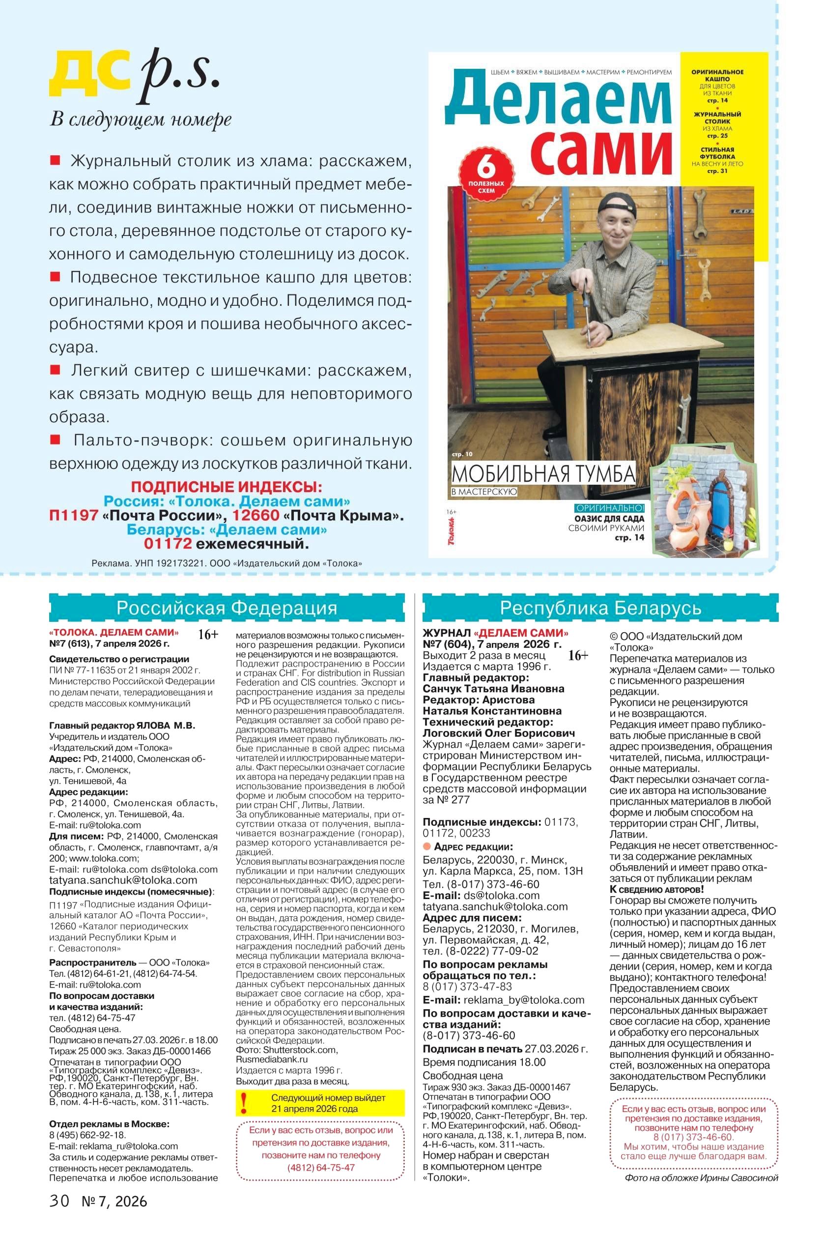 Коллекция проектов для рукодельниц в журнале «Делаем сами №7 2026»