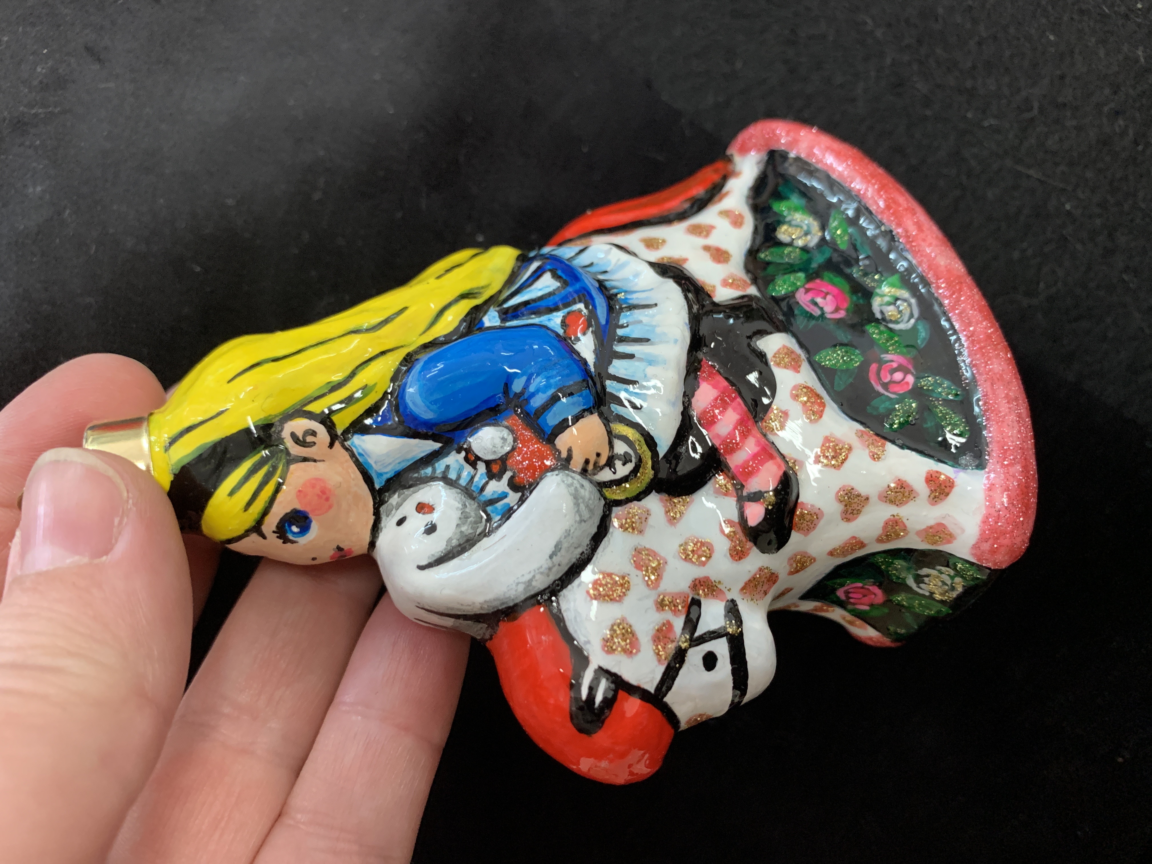 Продам елочную стеклянную игрушку авторской росписи. Форма от evis. Такая забававная версия Алисы в стране чудес🌝 Стиль росписи: поп-арт - добавляет игрушке сочных цветов и контраста