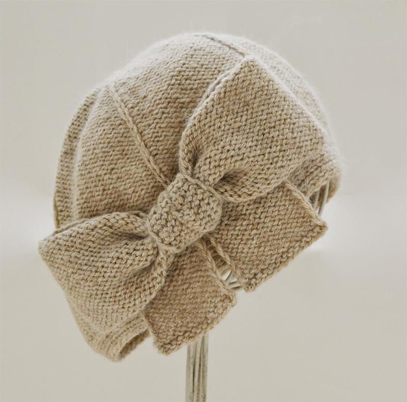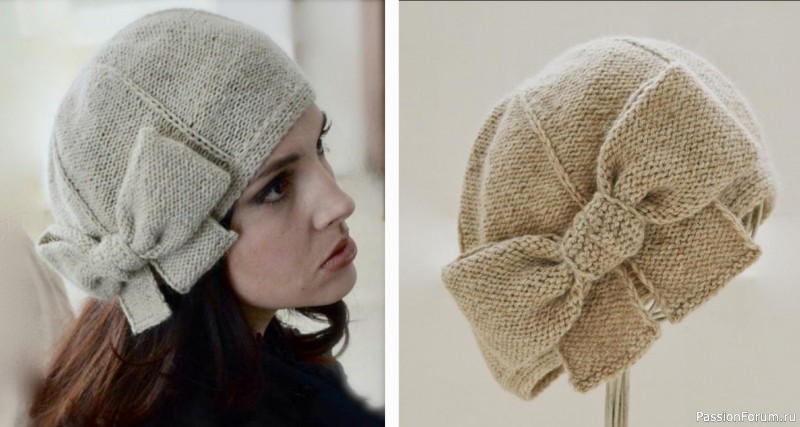 Очень красивый головной убор — вязаный берет, украшенный объемным бантом. Он помогает создать романтичный женственный стиль.