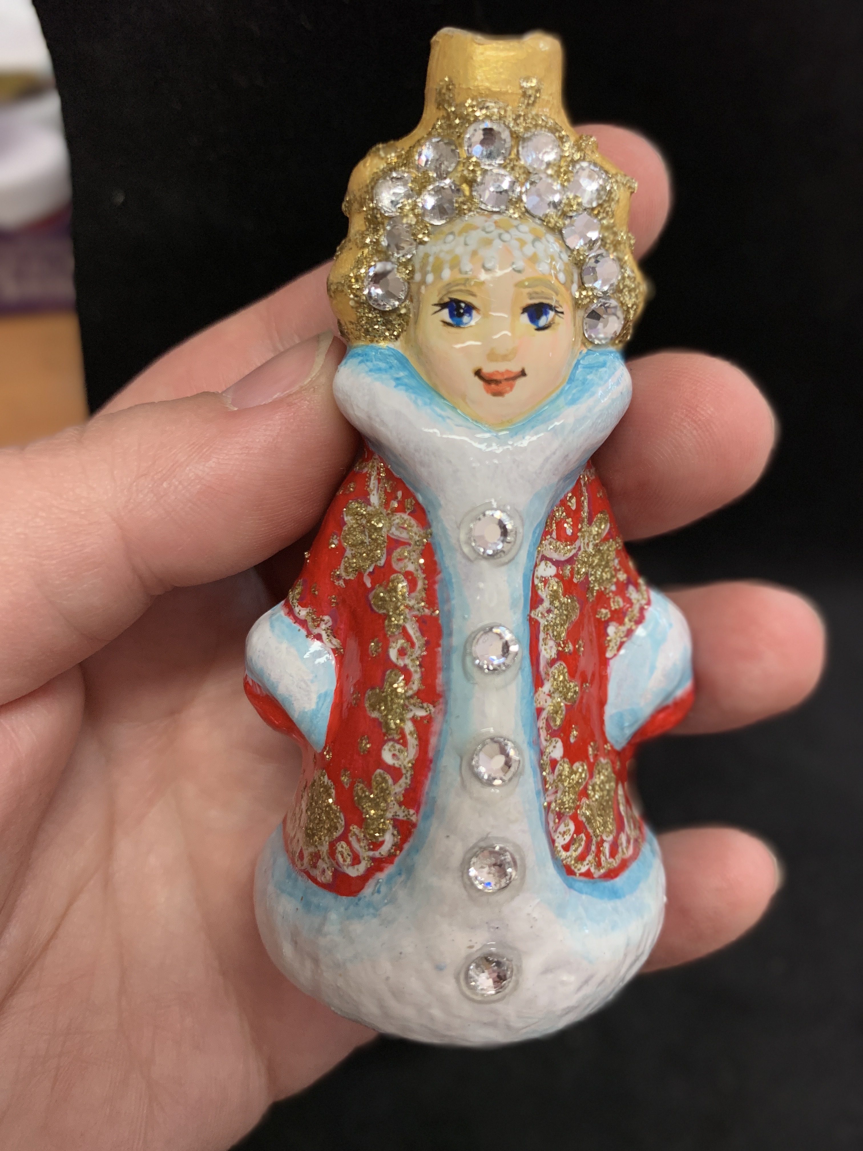 Миниатюрная красавица Снегурочка😍 Как и все игрушки, расписана с любовью❤️Ищет дом и ёлочку в нём😁🏡🎄Все вопросы в личные сообщения😊