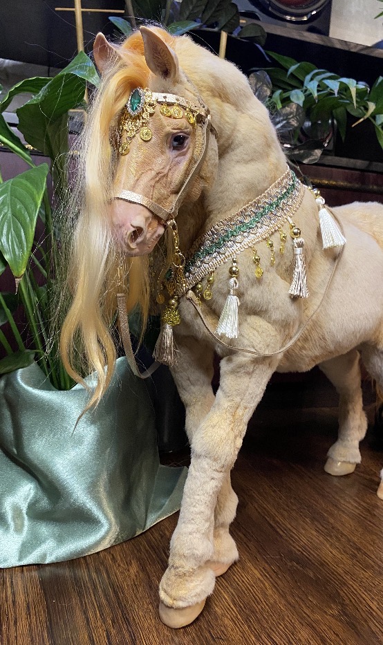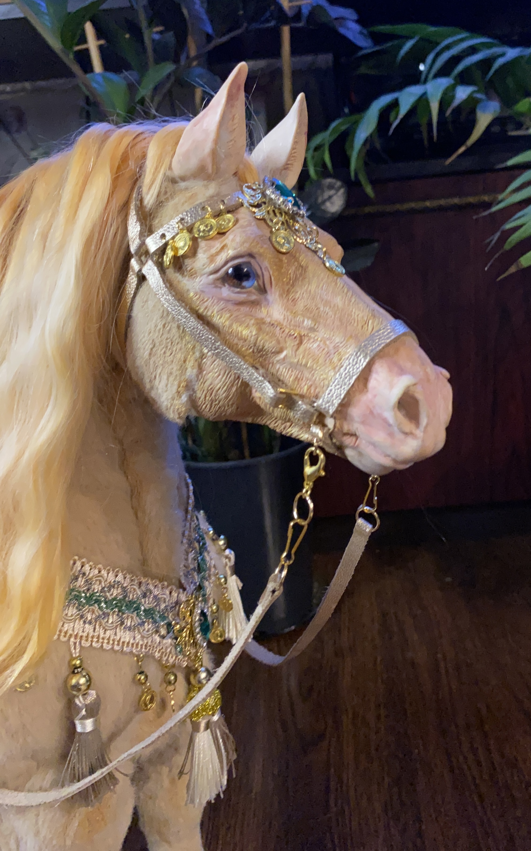 устала от однообразной работы: утяжки, стрижки, тонирования фигурки. Лошадка большая , поэтому работы море. Примерила на себя роль шорника.