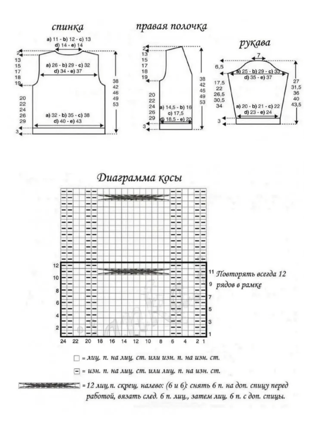 Узор с косами: 24 п. х 30 р. = 10 х 10 см (спицы № 3,5)