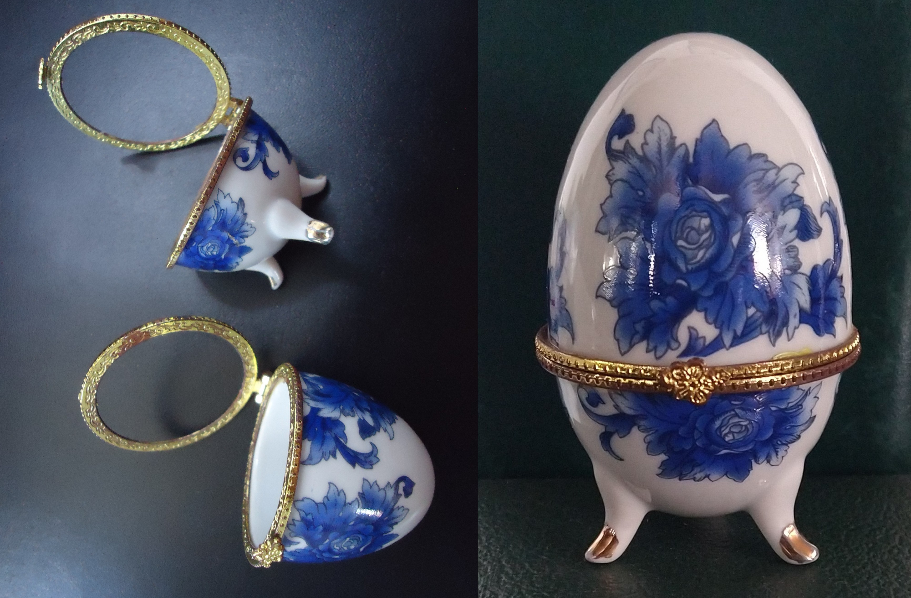 Однажды нашла по одной части от двух керамических шкатулочек в форме яйца. Одну из них обернула алюминевой фольгой по металическому ободку и прогрела над пламенем свечи затем, подклеила ко второй части.