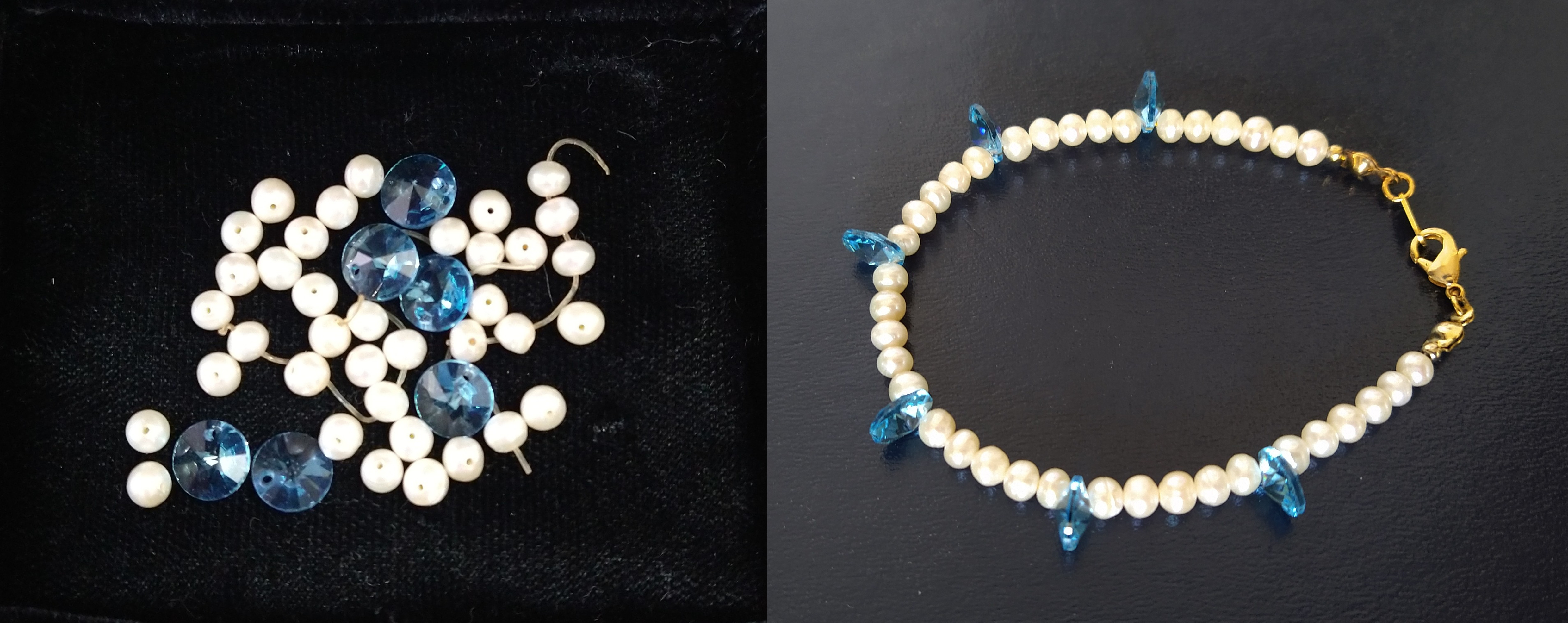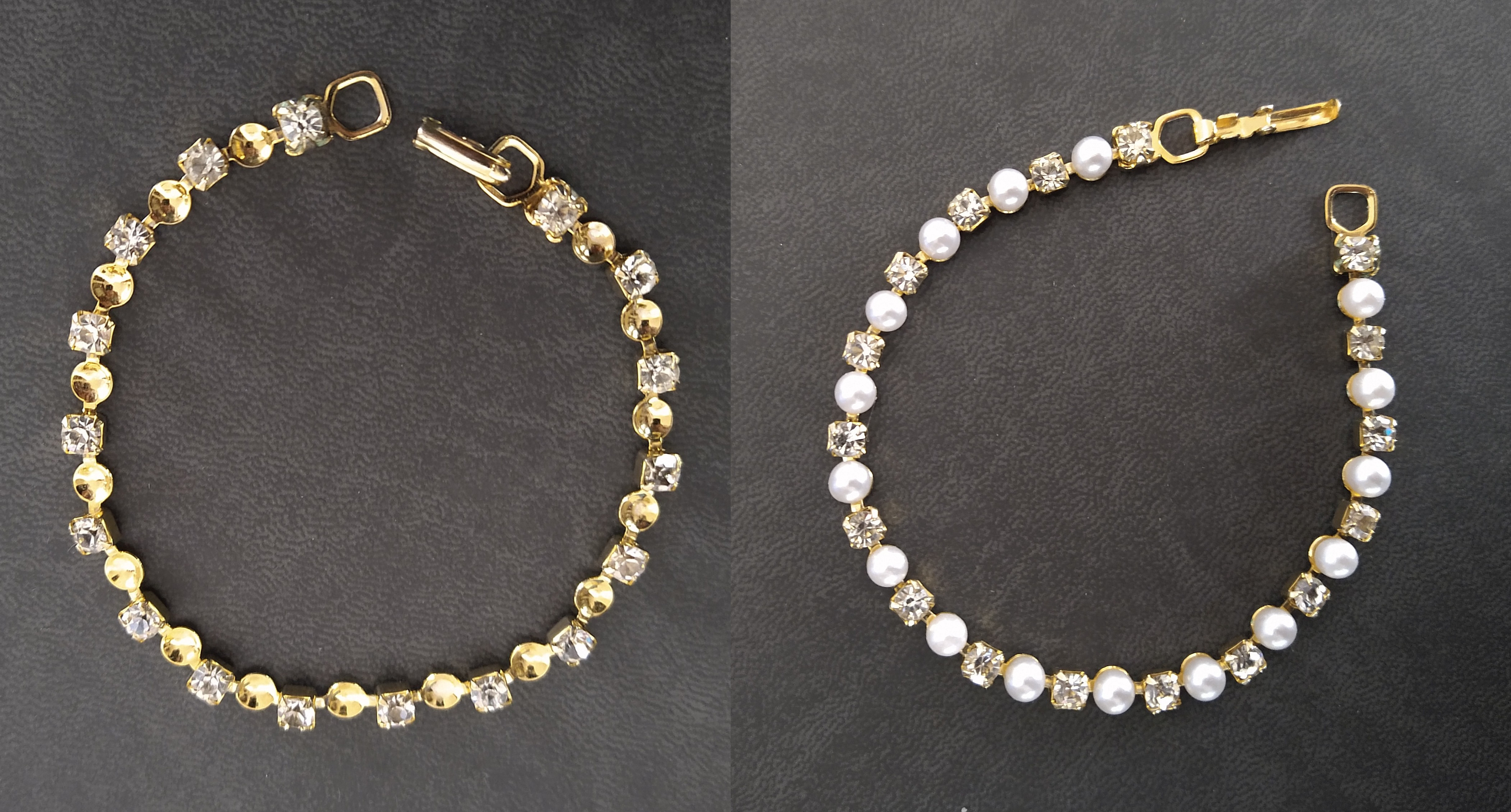 На теннисном браслете все стразовые вставки сохранились, а все жемчужные отсутствовали.