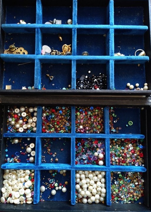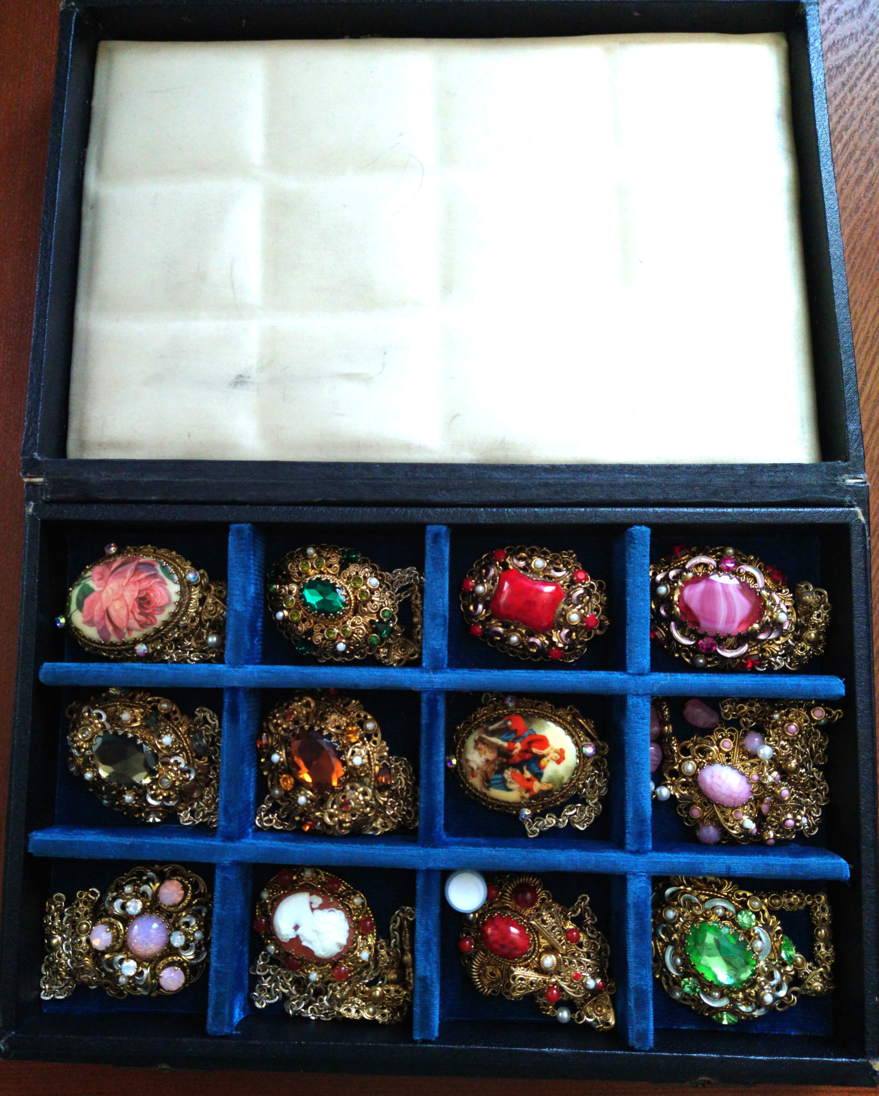 Совсем недавно нашла подходящие стразы в старинной коробке на блошке.