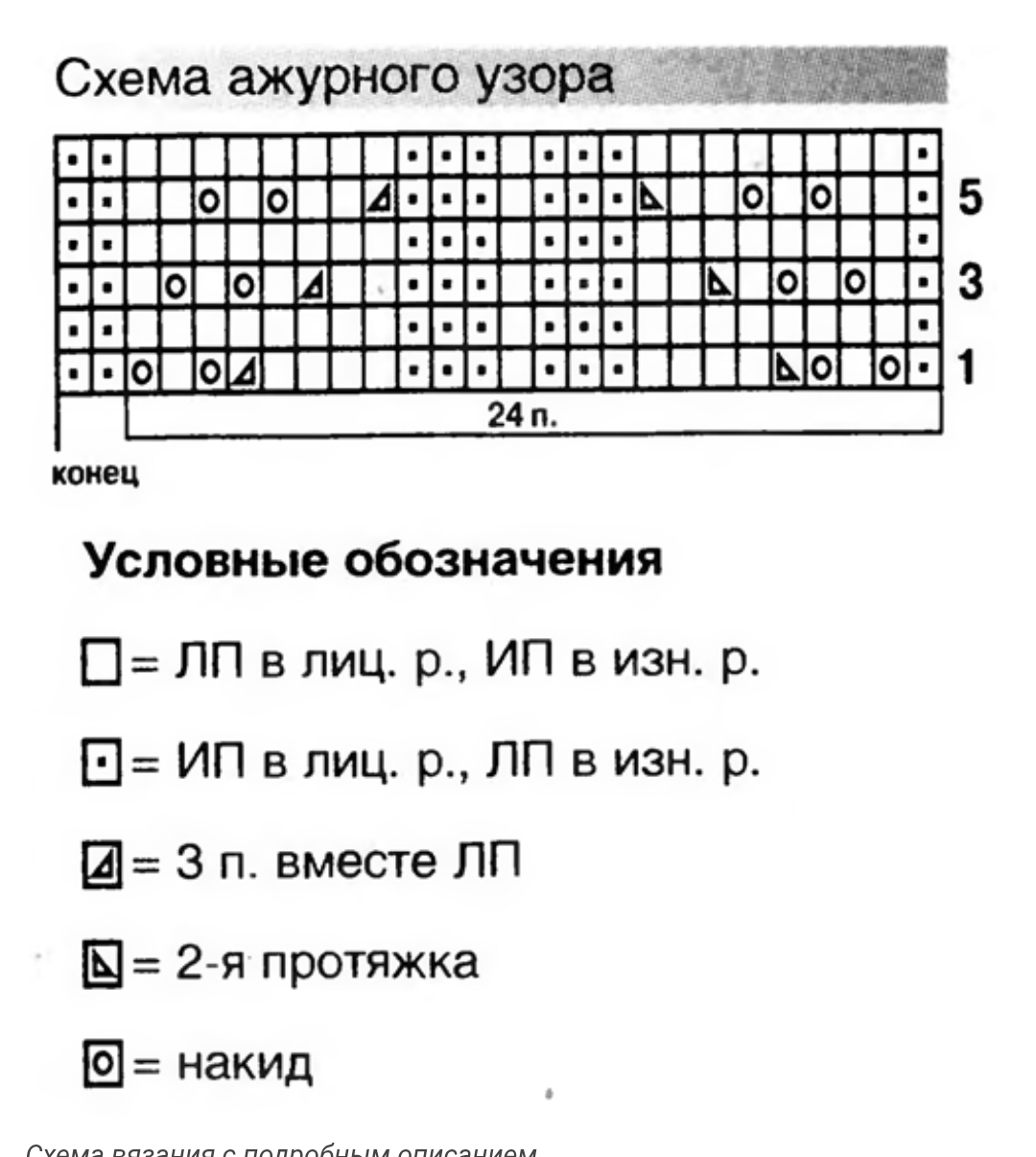 Ажурный узор из лиственных мотивов (кратно 24 п. + 2 п.):