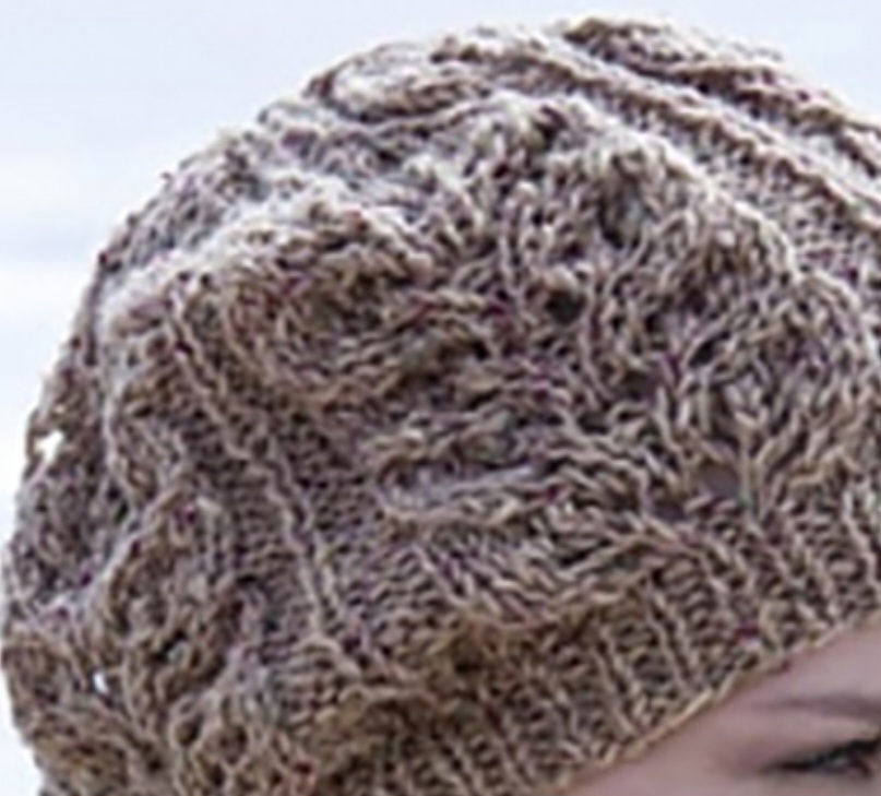 Вязаный спицами берет с узором из листьев — описание работы