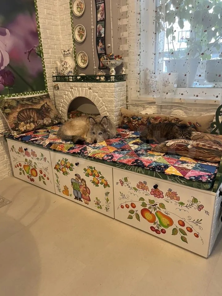 Подъехали тут фото интерьера, с хозяйкой которого я общаюсь уже два года. Вот за два года сотворили мы такие пейзажи. Всем м хорошо, и человекам и животинкам)) Никого не забыли! Первые фото - это с чего начиналось, кто смотрит мои топики, вспомнит их. Далее - новые! Семиметровый ламбрекен в интерьере! Тут не все проекты, что мы осуществили. Рыбу нашла одну, было две. Мальчиковой одеяло - домики!