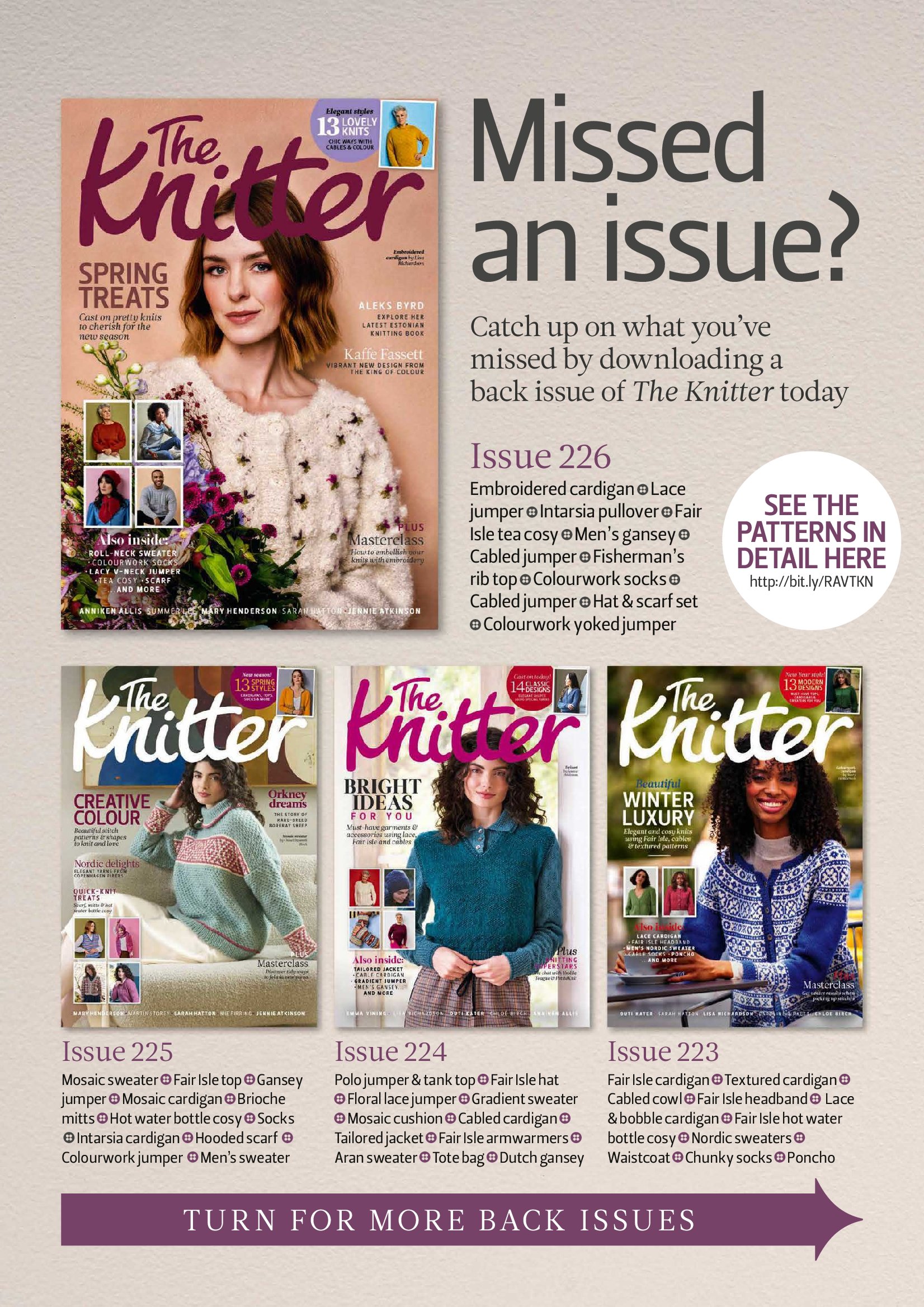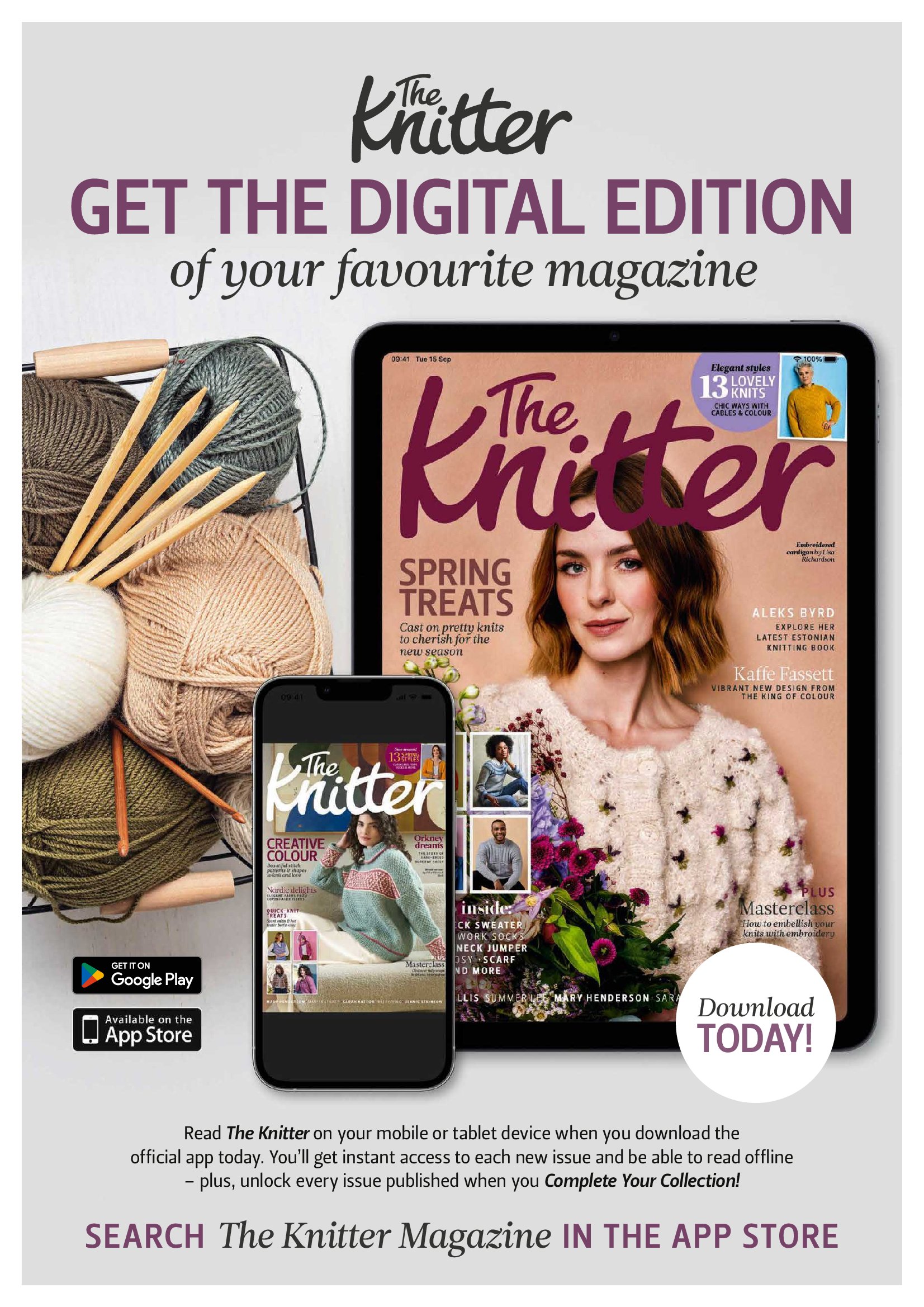 Популярный журнал из Великобритании посвящен вязанию спицами. Каждый выпуск содержит новые оригинальные проекты трикотажной одежды и вязаных аксессуаров от известных дизайнеров. В выпуске представлены современные проекты в классическом стиле, сочетающие в себе комфорт, модные тенденции и очарование нестареющей классики.