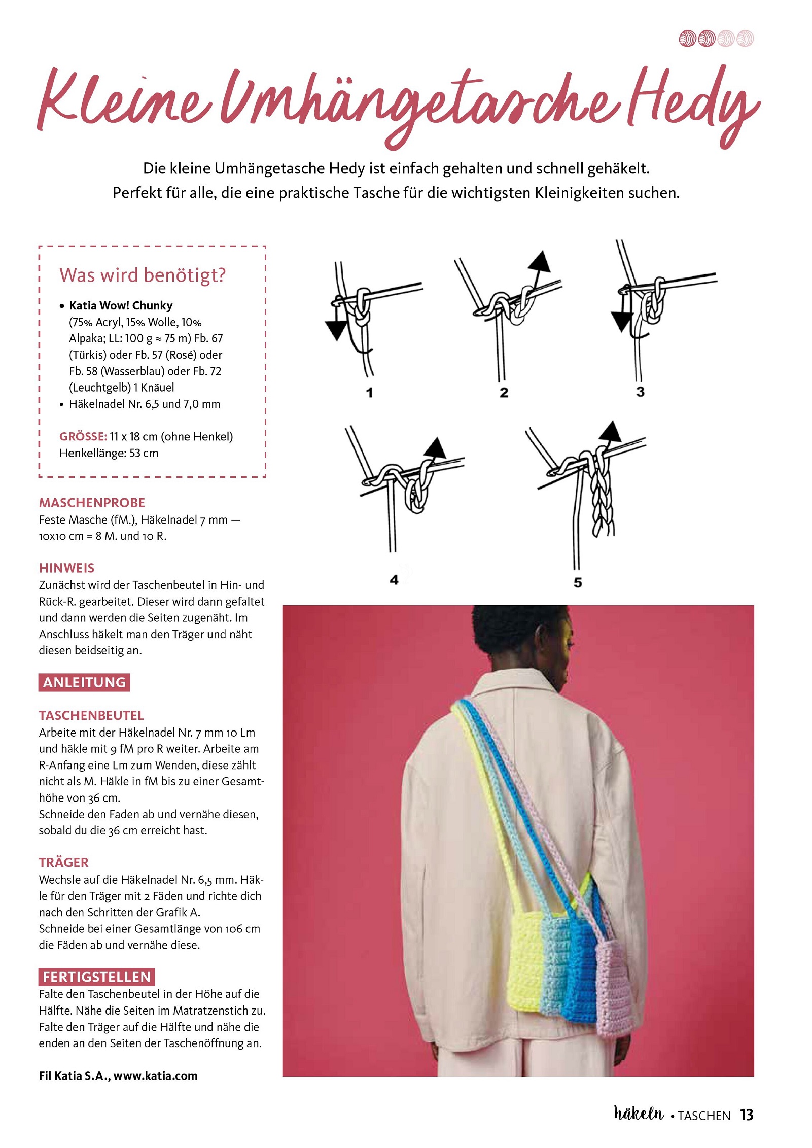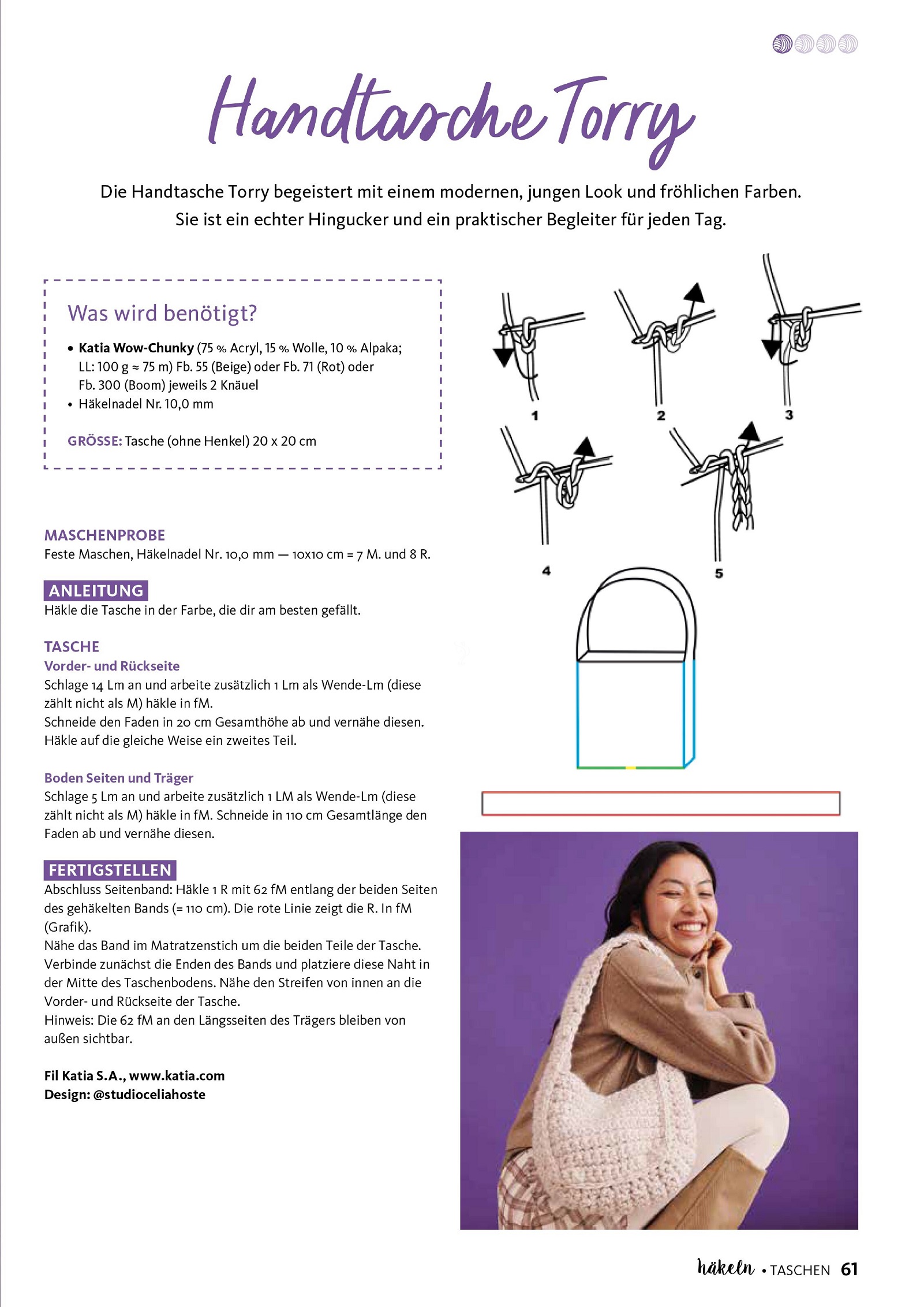 Немецкий журнал «Hakeln Das MaschenMagazin» предлагает проекты для вязания крючком. В этом выпуске вы найдете красочную подборку универсальных сумок, связанных крючком. Для любого образа и любого технического уровня найдется подходящая сумка с инструкциями по вязанию крючком.
