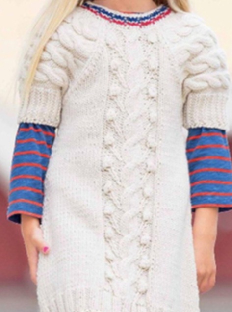 Рукава: кремовой нитью набрать 50 (52) п. и вязать следующим образом: кром., 2 (4) изн., 36 п. узора с косами, 10 п. поперечной резинки, кром. с узелковым краем (кром. в лиц. и изн. р. вязать лиц.). Выполнить всего 7 переплетений и в след. 8-м р. все п. закрыть.