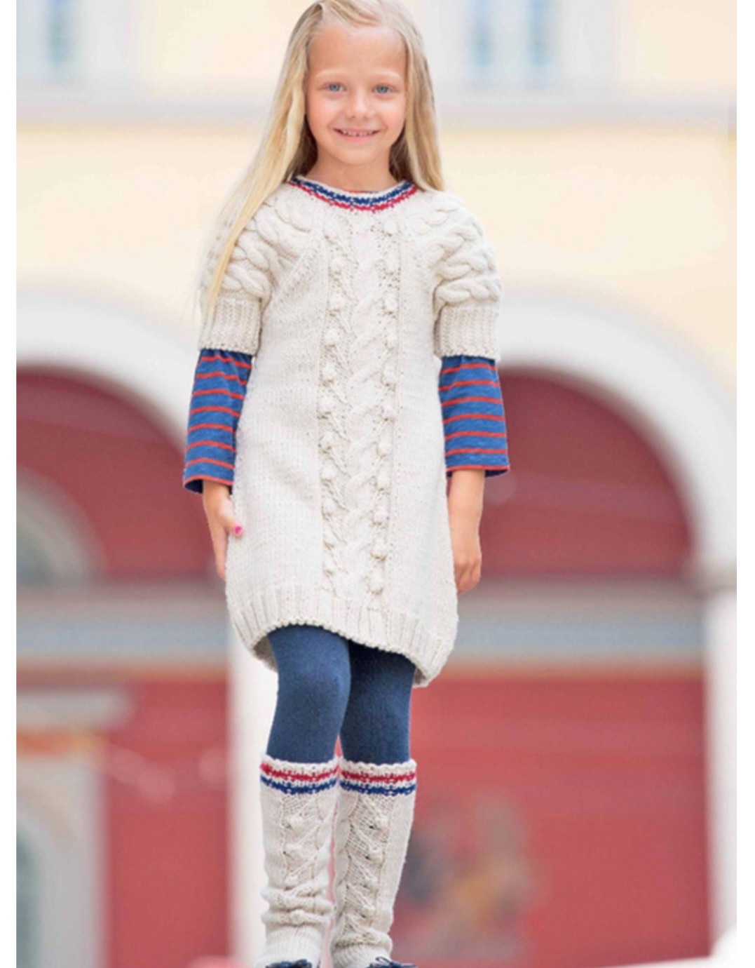 Вам потребуется: 400 (450) г кремовой (цвет 152), по 50 г синей (цвет 14) и тёмно-красной (цвет 44) пряжи Bingo Lana Grossa (100% шерсти, 80 м/50 г); спицы № 5, круговые спицы № 5, крючок № 5.