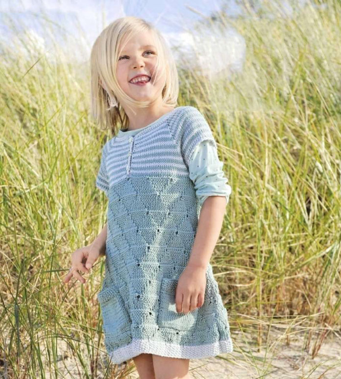 Детское платье спицами с сочетанием нескольких узоров