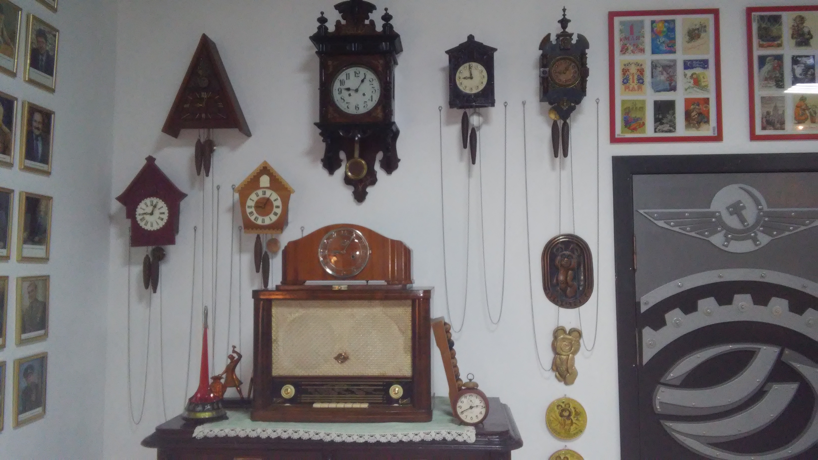 Здравствуйте, мои дорогие форумчанки! Увидела, что мало у нас рассказов на этой неделе и решила осуществить свою "мечту", рассказав о музее, в котором работала год. Этот музей находится в 10 метрах от трассы М-4 "ДОН" в Ростовской области, город Каменск-Шахтинский. Музей располагается на минус первом и первом этаже здания, в котором второй и третий этажи занимает гостиница. Это частный музей, как раз сегодня у его организатора день рождения)))). Работала я администратором на минус первом этаже , но не могла удержаться и водила по залу группы людей, которые приходили и рассказывала о тех экспонатах, которые были в моем зале. В чём уникальность музея? Моё мнение в первую очередь в том, что практически все экспонаты действующие: если это автомобиль, то он на ходу, приведён в идеальный вид, за ним обязательно следит механик. Если это часы с кукушкой, то кукушка обязательно кукует, а часы с боем, обязательно бьют. Если это граммофон, то его заводишь, и слушаешь музыку. Даже бутылки с водой и водкой настоящие, и содержимое настоящее(только вам не дадут это попробовать, но поверьте мне на слово, что там то, что и указано на этикетке).
