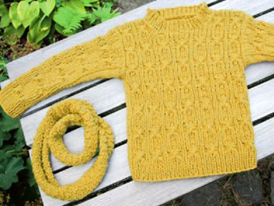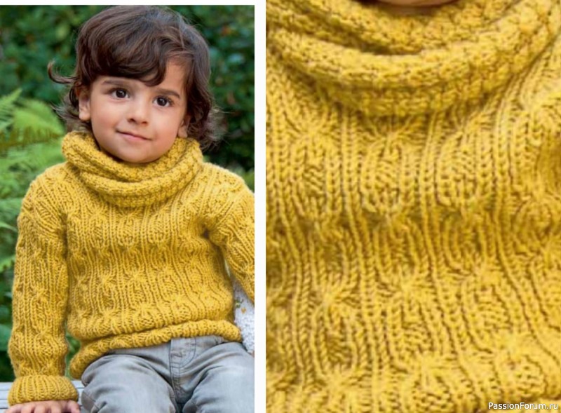 Размеры: 80/86 (92/98) 110/116. Вам потребуется: 300 (350) 350 г жёлтой (цв. 154) пряжи Bingo (100% шерсти, 80 м/50 г) Lana Grossa; спицы № 4,5 и № 5; круговые спицы № 5, 2 вспомогательные спицы.