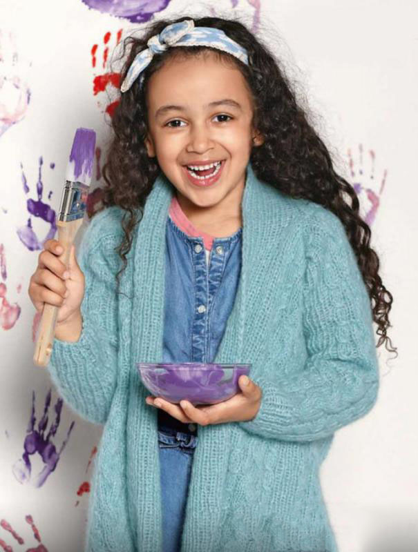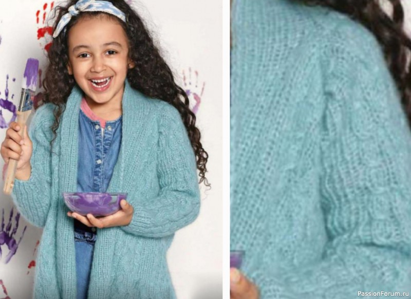 Объемная кофта для девочки спицами