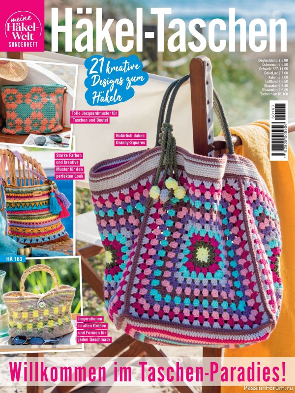 Немецкий журнал по вязанию крючком. В этом выпуске, HA163, мы собрали для вас разнообразную и красочную подборку вязаных сумок. Здесь найдется идеальная сумка для любого образа, любого уровня мастерства и любого вкуса