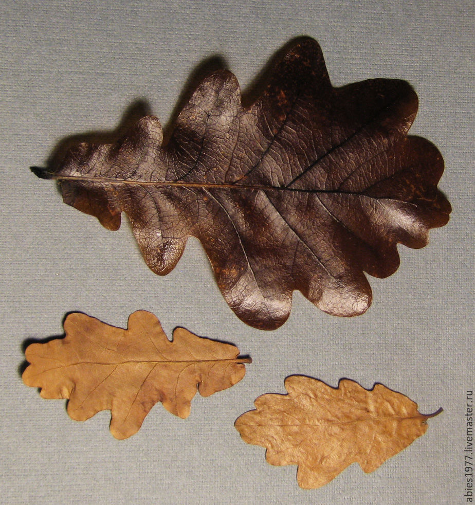 Особенно хорошо удаются дубовые листья, листья вяза, эвкалипта, падуба, прицветники липы, крылатые кленовые плоды.