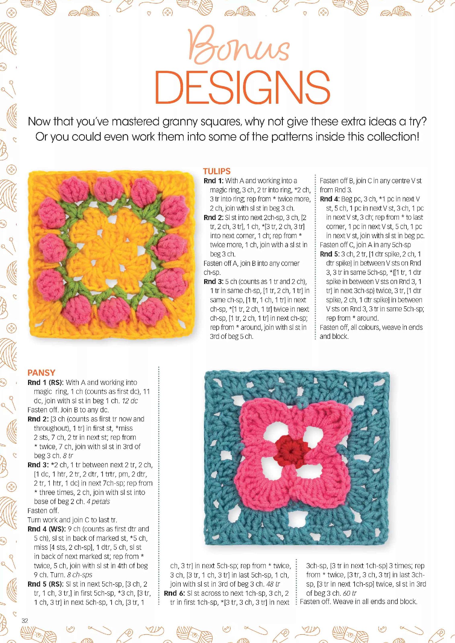 Журнал по вязанию крючком оригинальных и ярких моделей. Журнал для тех, кто хочет выглядеть стильно и оригинально и сделать уютнее свой дом. В номере модели одежды и аксессуаров для детей и взрослых, забавные игрушки, подушки, салфетки, коврики, уютные пледы и многое другое.