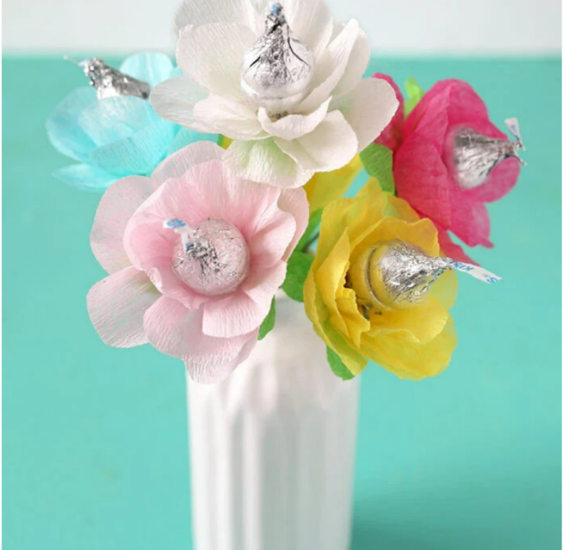 Цветы из гофрированной бумаги с конфетами: мастер-класс