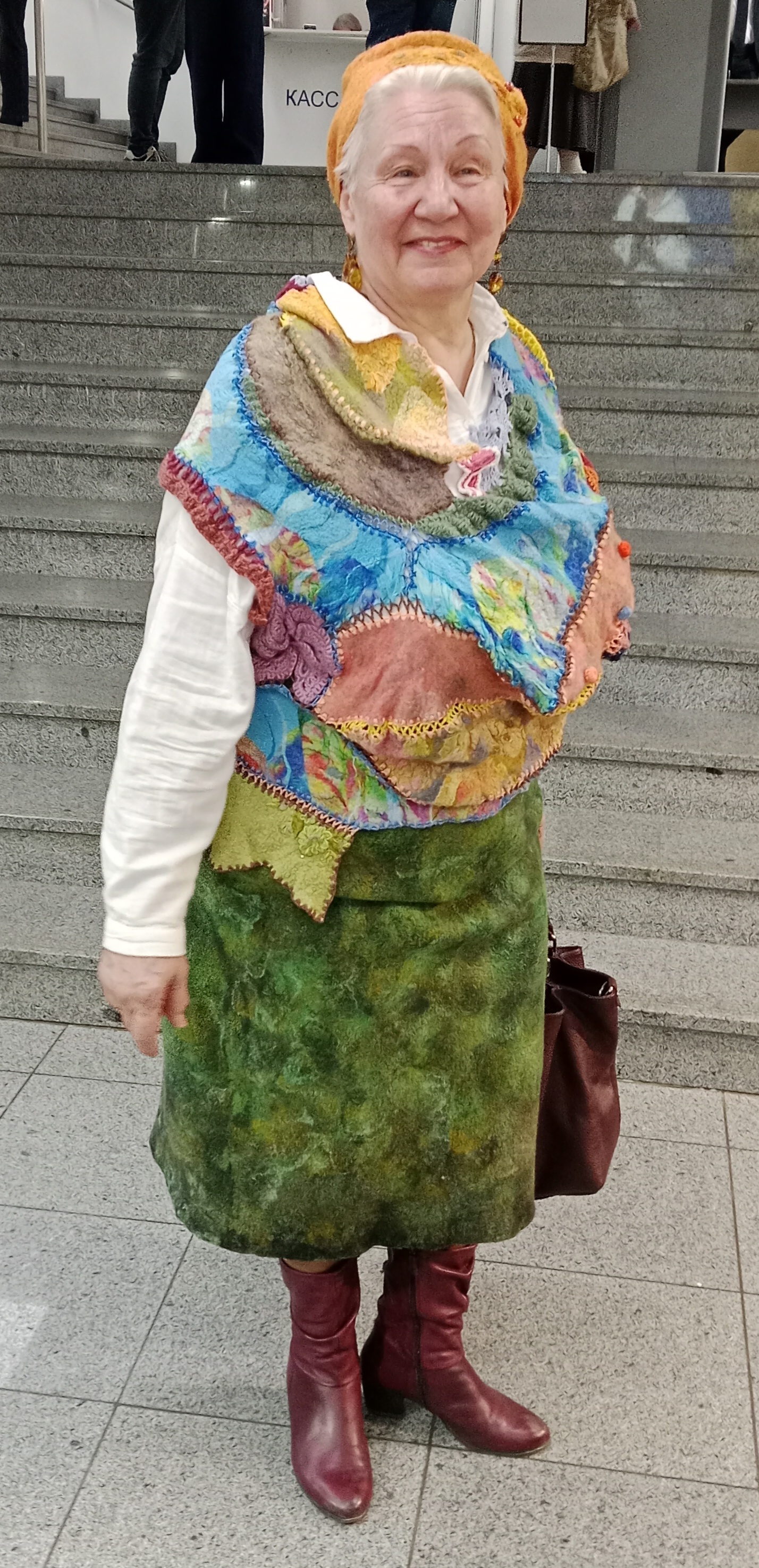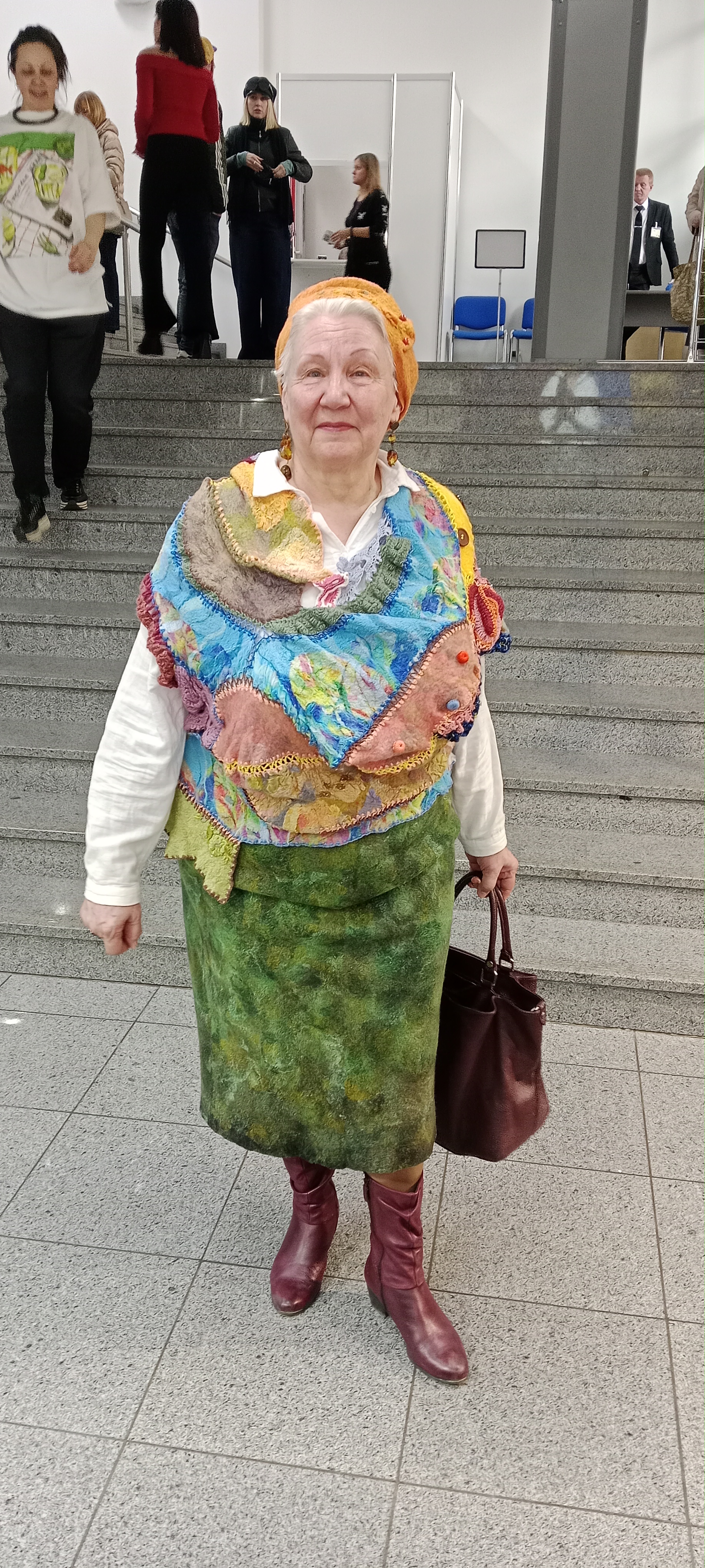 Добрый день. Давно не появлялась. Очень соскучилась по Вашим коментариям. Представляю мою новую работу по утилизации. Сотворила жилетик в стиле Бохо. Использовала два вида техники - валяние и ирландское кружево. Получился очень уютный кокон. Выгуляла на ювелирную выставку Амбер Плаза. Многие обращали внимание, интересовались сама ли. Пишите все плюсы и минусы.