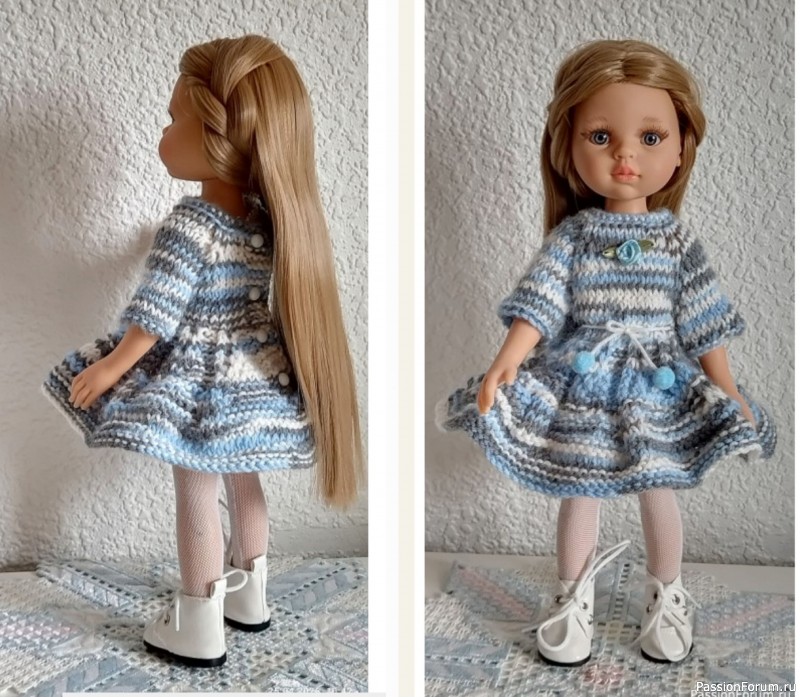 Сегодня предлагаю вашему вниманию очередное платьице, которое я связала спицами из троицкой секционной пряжи - Baby Кроха для моей испанской куколки Паолы (рост 32 см). Секционной пряжей я вяжу первый раз!, она отличается от обычной (однотонной) тем, что окрашена не равномерно, а сегментами разных цветов по длине нити, создавая узоры (полоски, градиент) автоматически при вязании. В отличие от меланжа, где цвета перемешаны, секционка формирует четкие или плавные цветовые переходы, не требуя смены клубка.