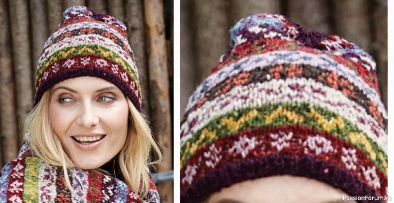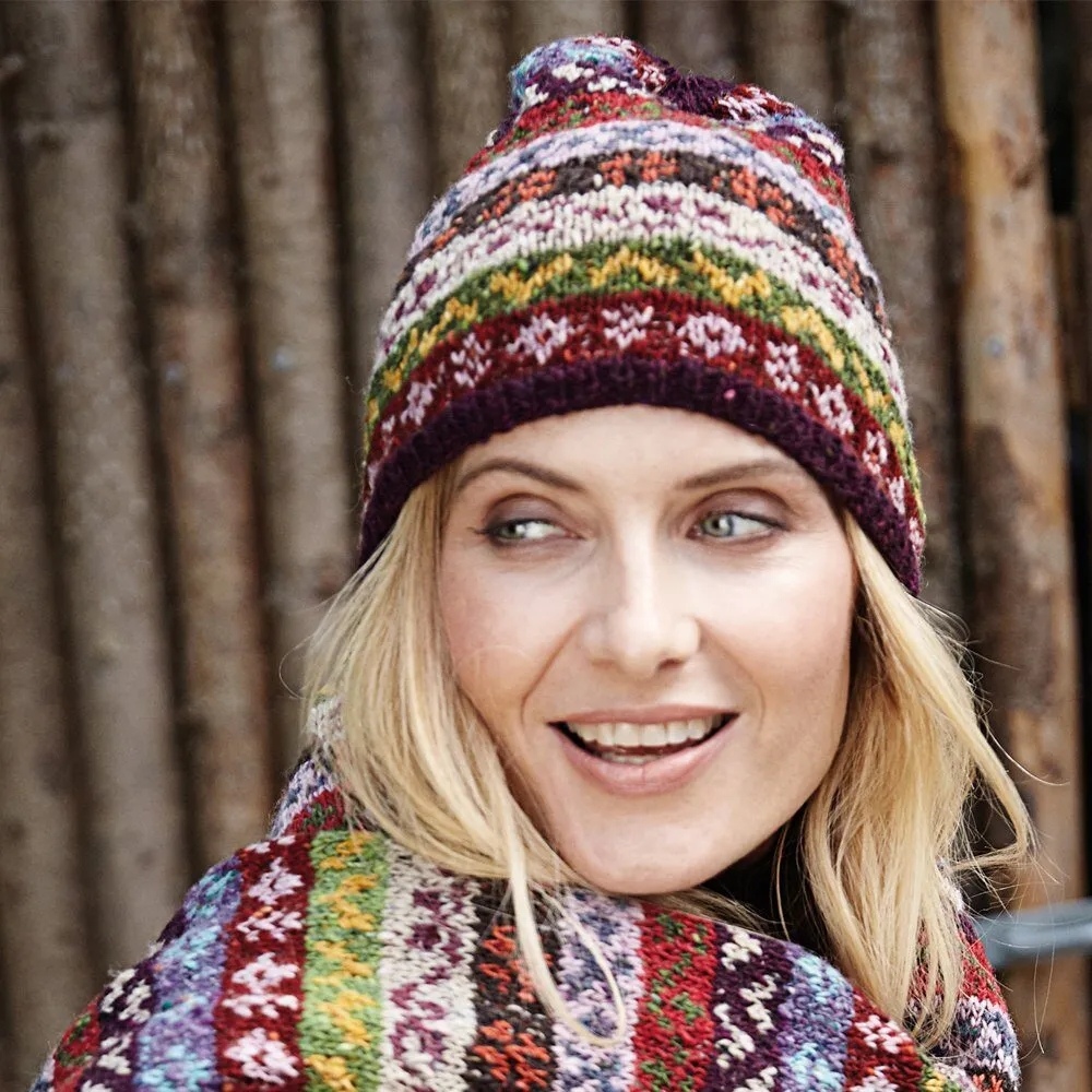 Многоцветные жаккардовые орнаменты делают эту шапку яркой и радостной, а мериносовая шерсть обеспечивает исключительное тепло.
