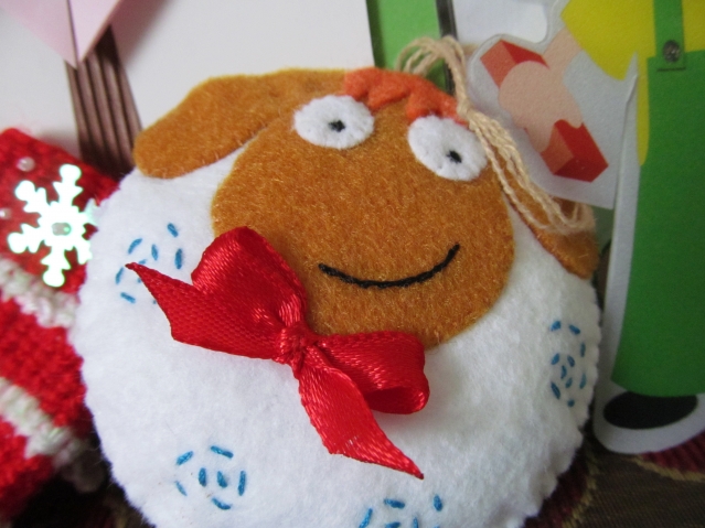а это Аленушкина посылочка.Для всех персональный подарочек!И на елку замечательная овечка с кокетливым бантиком!