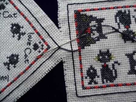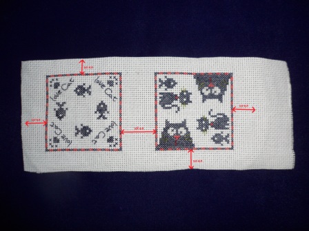 Стираем. Сушим. Гладим. Разрезаем по-центру между квадратами и обрезаем края таким образом, чтобы вокруг каждого квадрата осталось по 5 клеточек. Оптимальное количество этих клеточек я установила опытным путем. Теперь понятно, зачем мы отступали 16 клеточек между квадратами. 3 на отступ бэкстича и 5 на отступ до края. Итого 3+5+5+3=16.