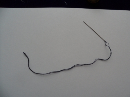 Опытным путем я выяснила, что удобнее прошить 5-6 стежков, а потом уже затягивать нить.
