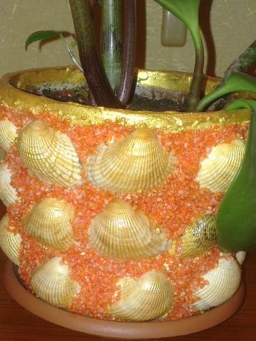 мне с ракушками очень понравился горшок. а оранжевое между ракушками это что?